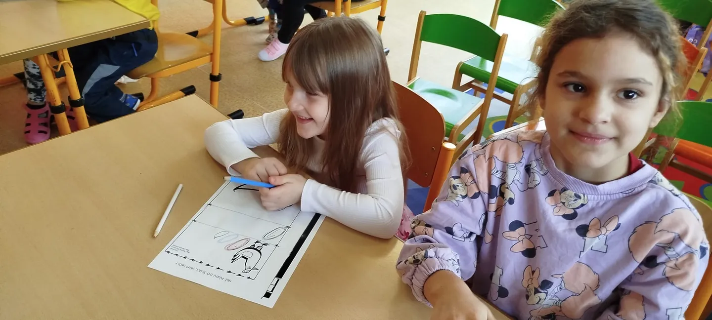 Předškoláci navštívili první a druhé třídy v ZŠ Cihelní, kde měli možnost vidět, jak probíhá vyučování. Prohlédli si třídu, učební pomůcky, vyzkoušeli si psaní, počítání a kreslení na tabuli. Plnili úkoly, při kterých si mohli ověřit své dovednosti a znalosti, zazpívali si a na závěr si prohlédli družinu.