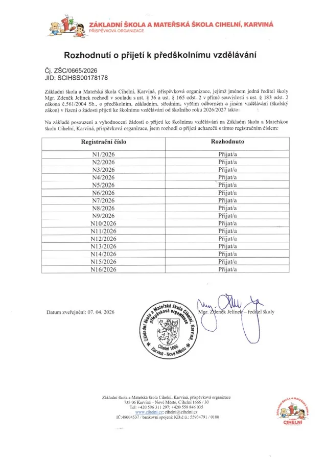 Hormadné rozhodnutí MŠ Nedbalova 26-27