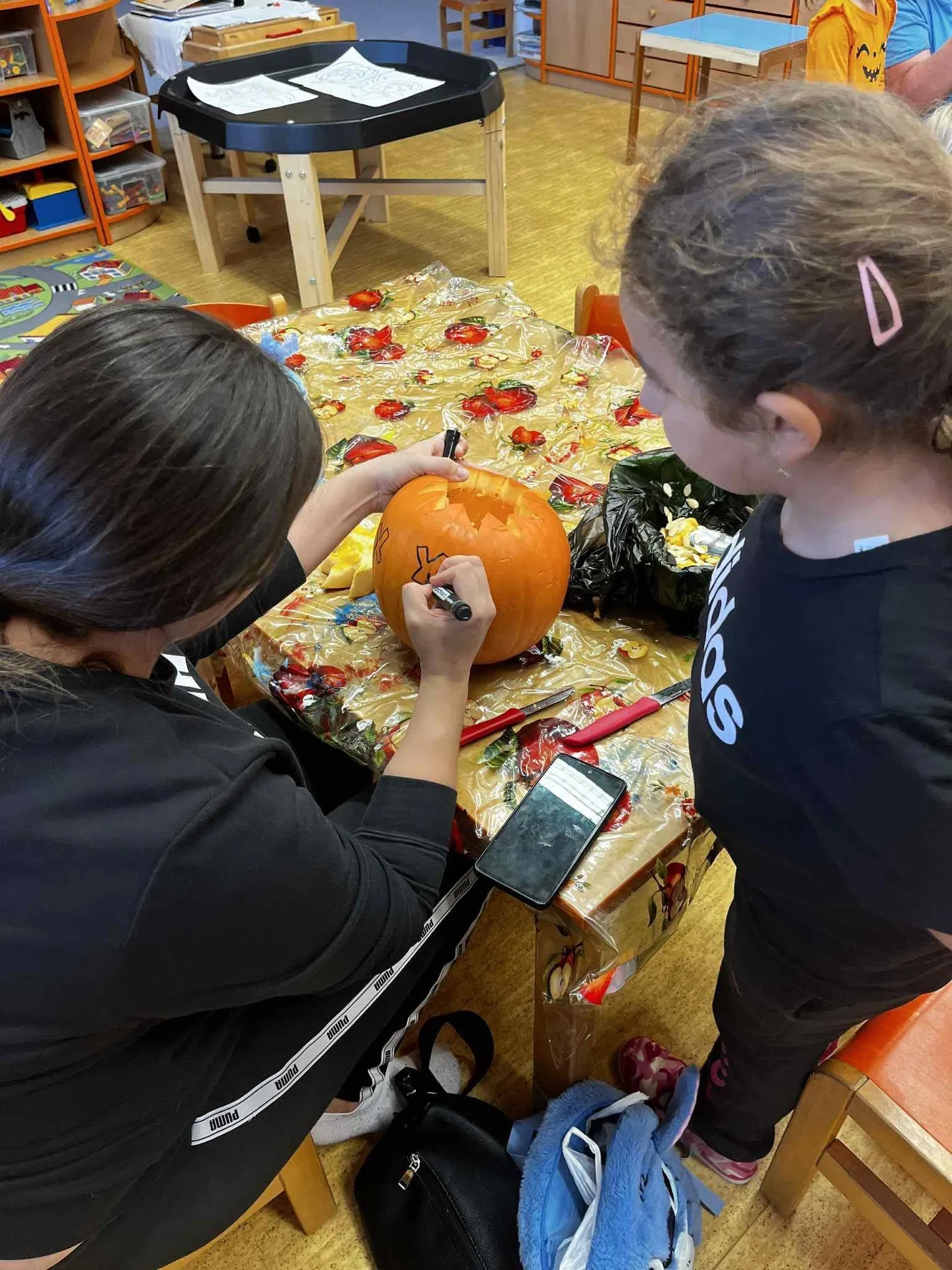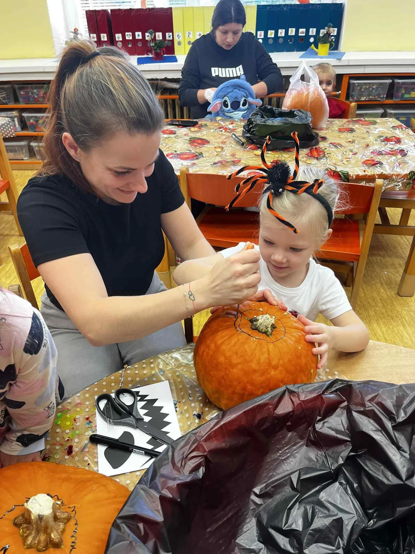 Velkým zážitkem byla drakiáda, na kterou se děti velmi těšily, a také halloweenské dopoledne, kdy se třída proměnila v kouzelné místo plné masek, her a smíchu.