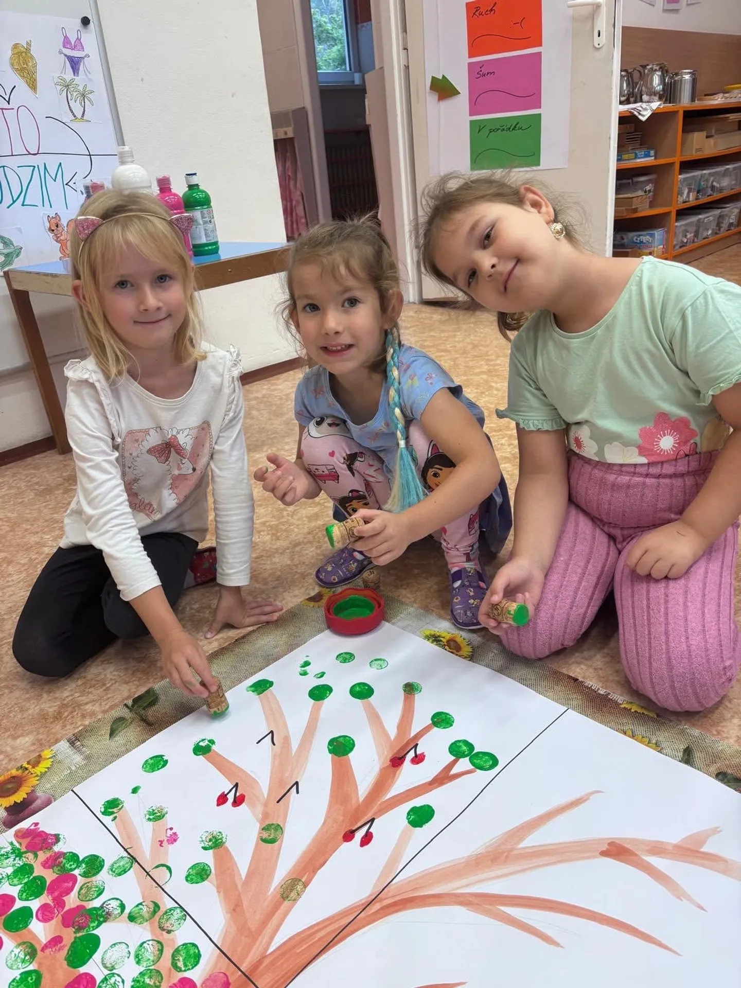 Děti se už více zapojovaly do všech činností, spoluvytvářely programovou nabídku, objevovaly nové role v kolektivu a zkoušely si vlastní hranice. P. učitelky se snažily být jejich průvodci, vedly je ke kooperaci.