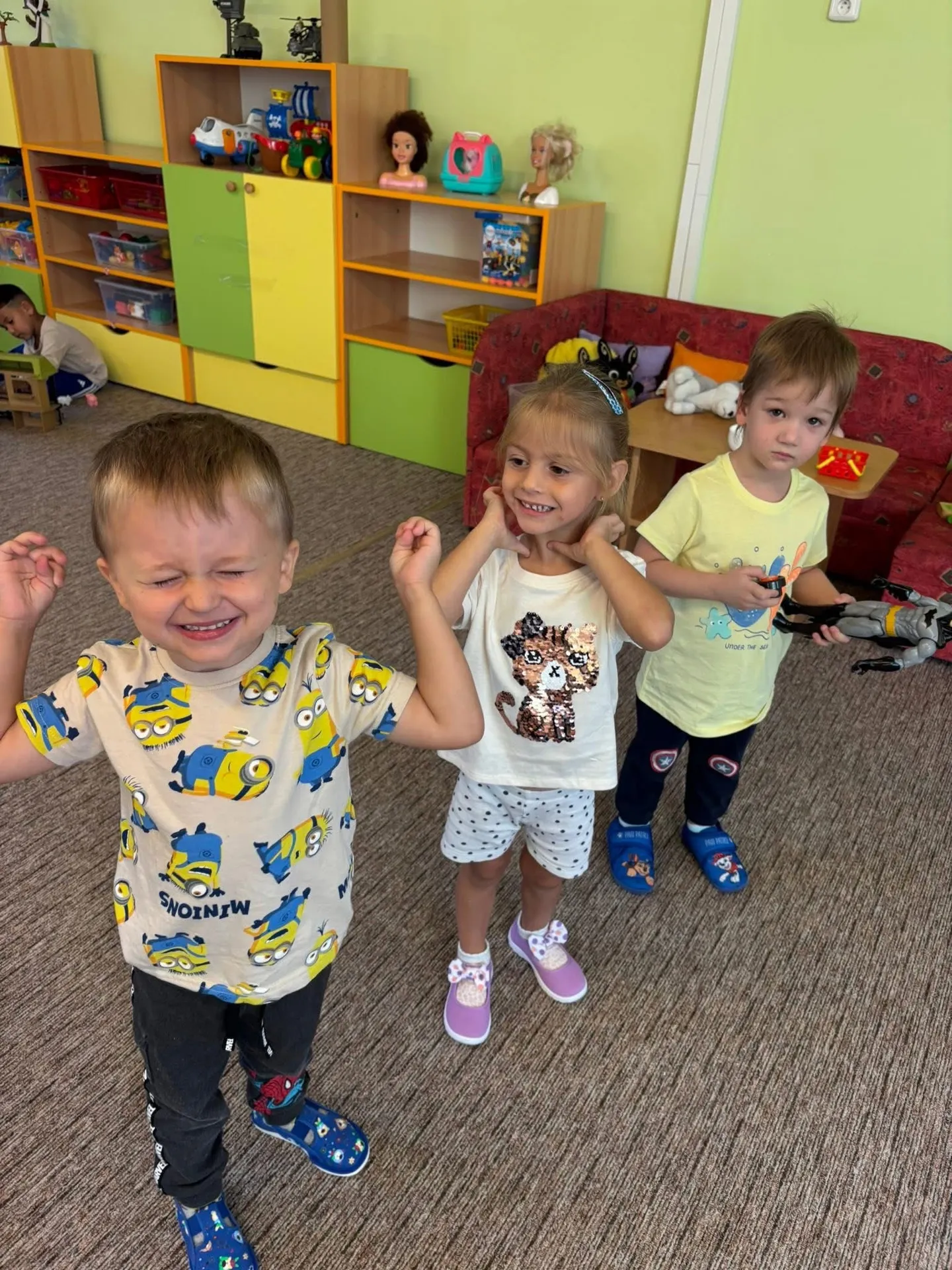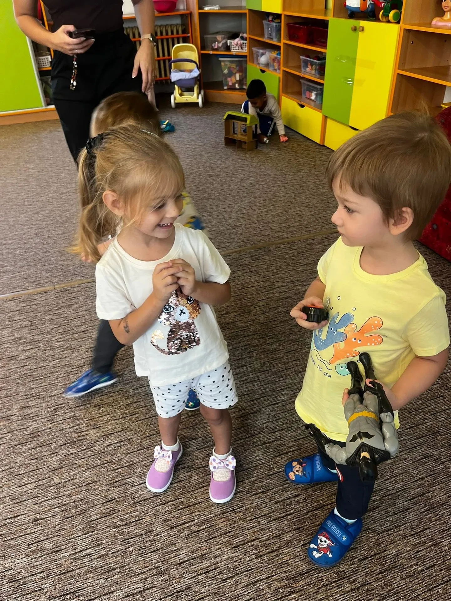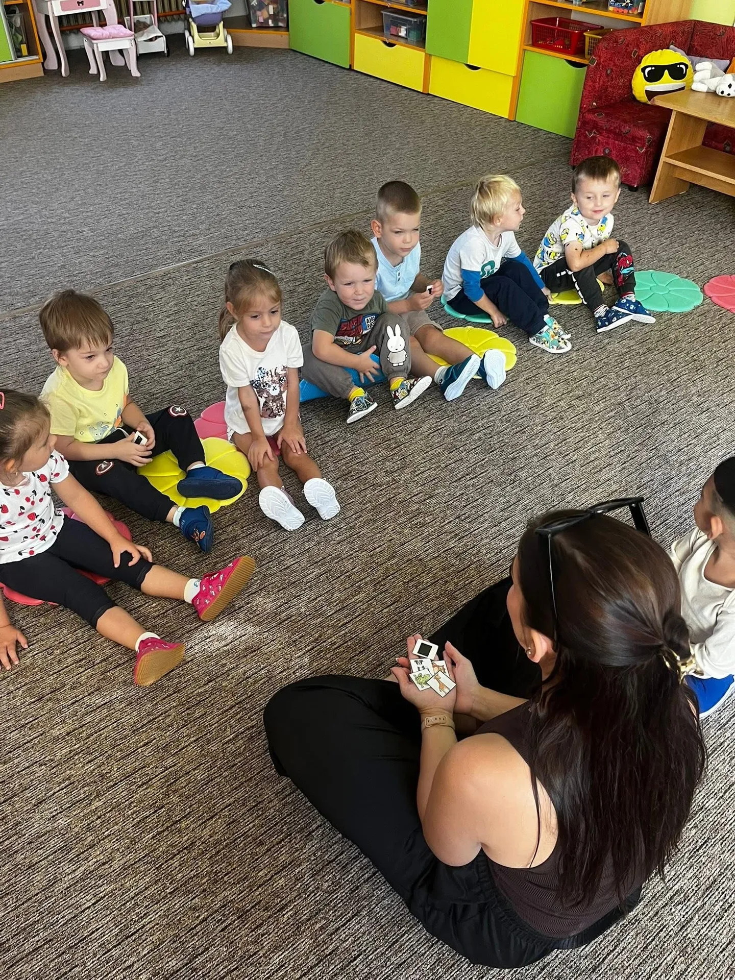 P. učitelky se snažily podporovat děti při loučení s rodiči, nabízely náruč i oporu při hrách. Hlavním cílem byla adaptace bez stresu.