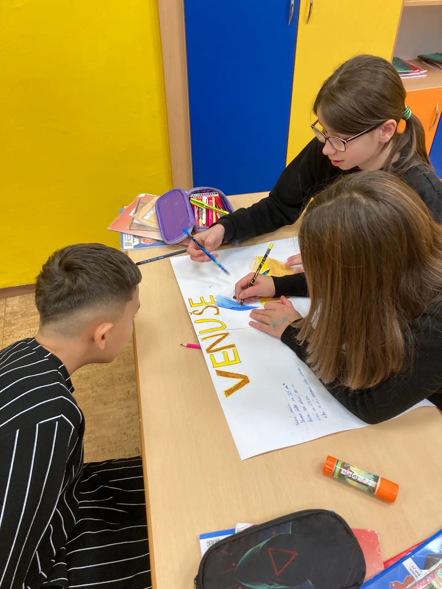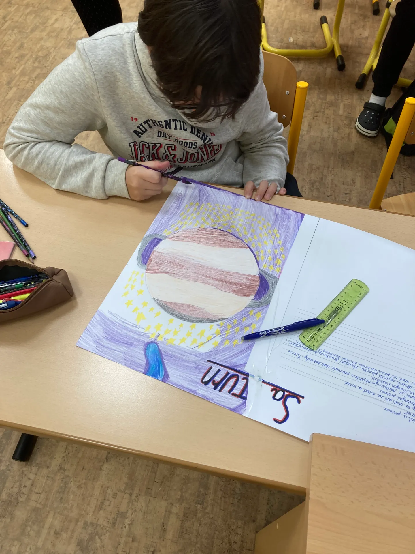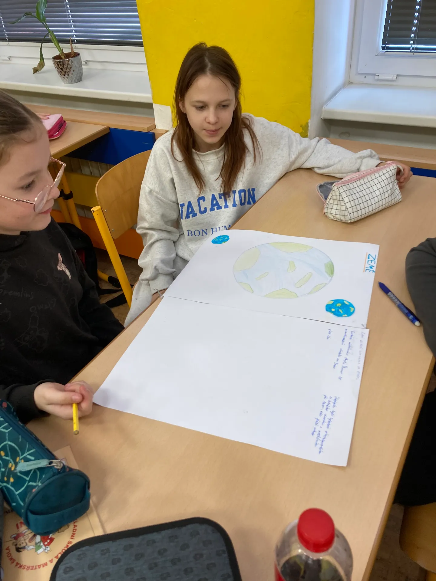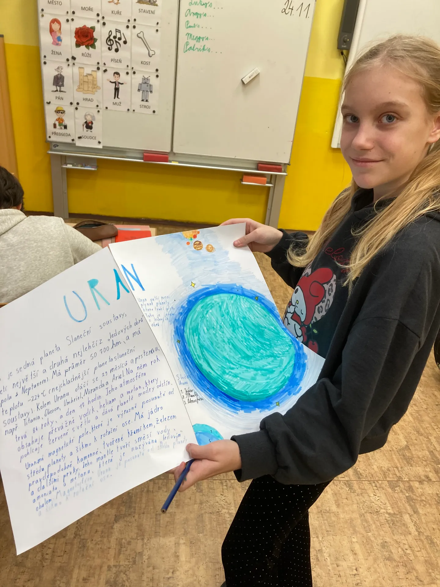 Žáci pracovali ve dvojicích na tématech z celého vesmíru; planety, Měsíc, Slunce, Mléčná dráha, souhvězdí, kosmonautika, hvězdárny a mnoho dalšího. Každý tým připravil referát, obrázky a kreativní prvky jako otevírací okénka, mini knížečky a různé nalepovací prvky. Vše jsme poté spojili do jedné třídní knihy.