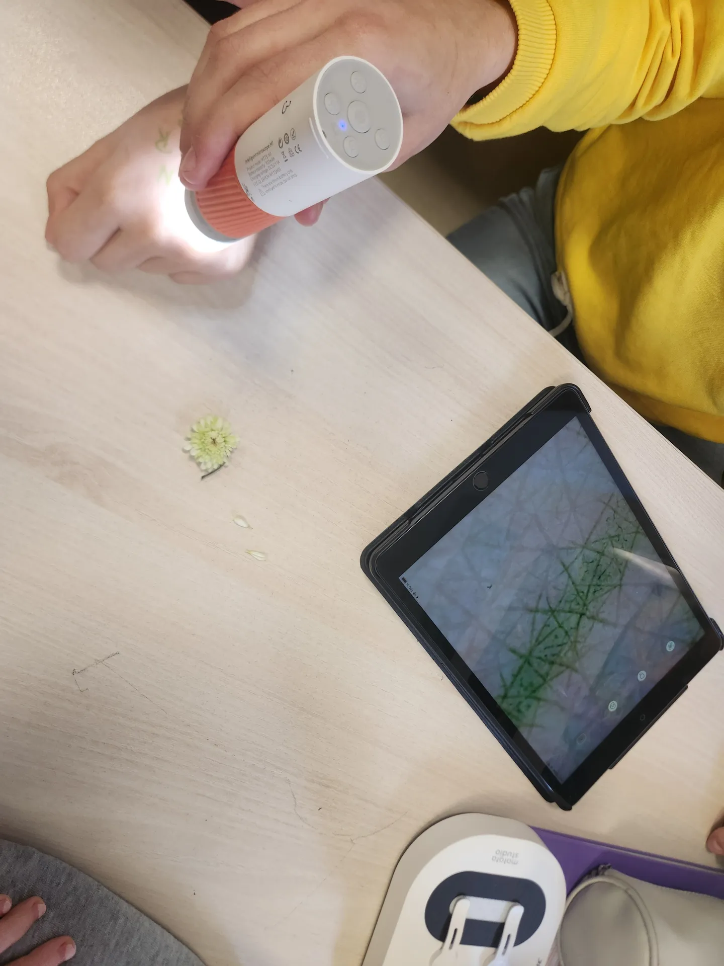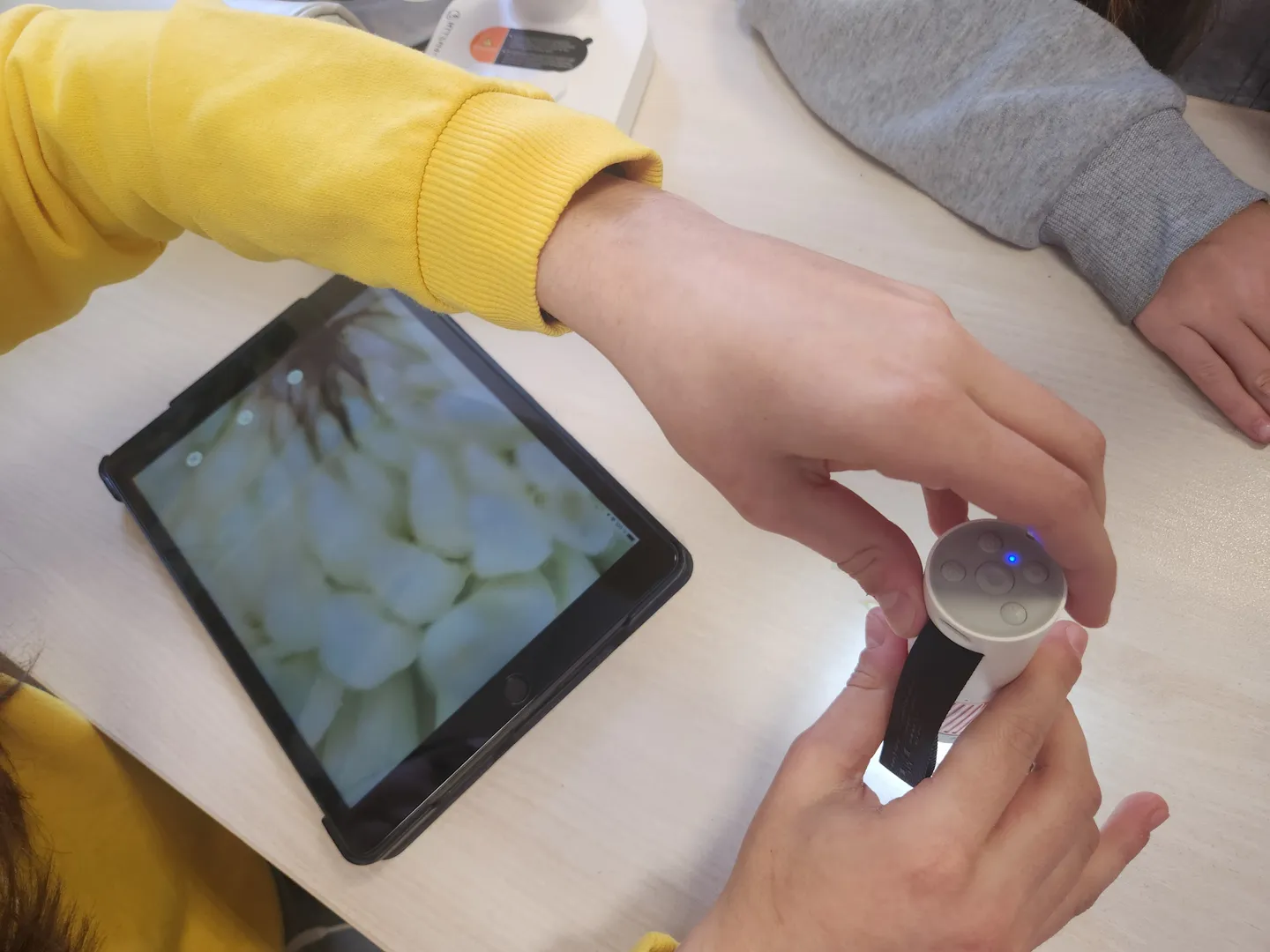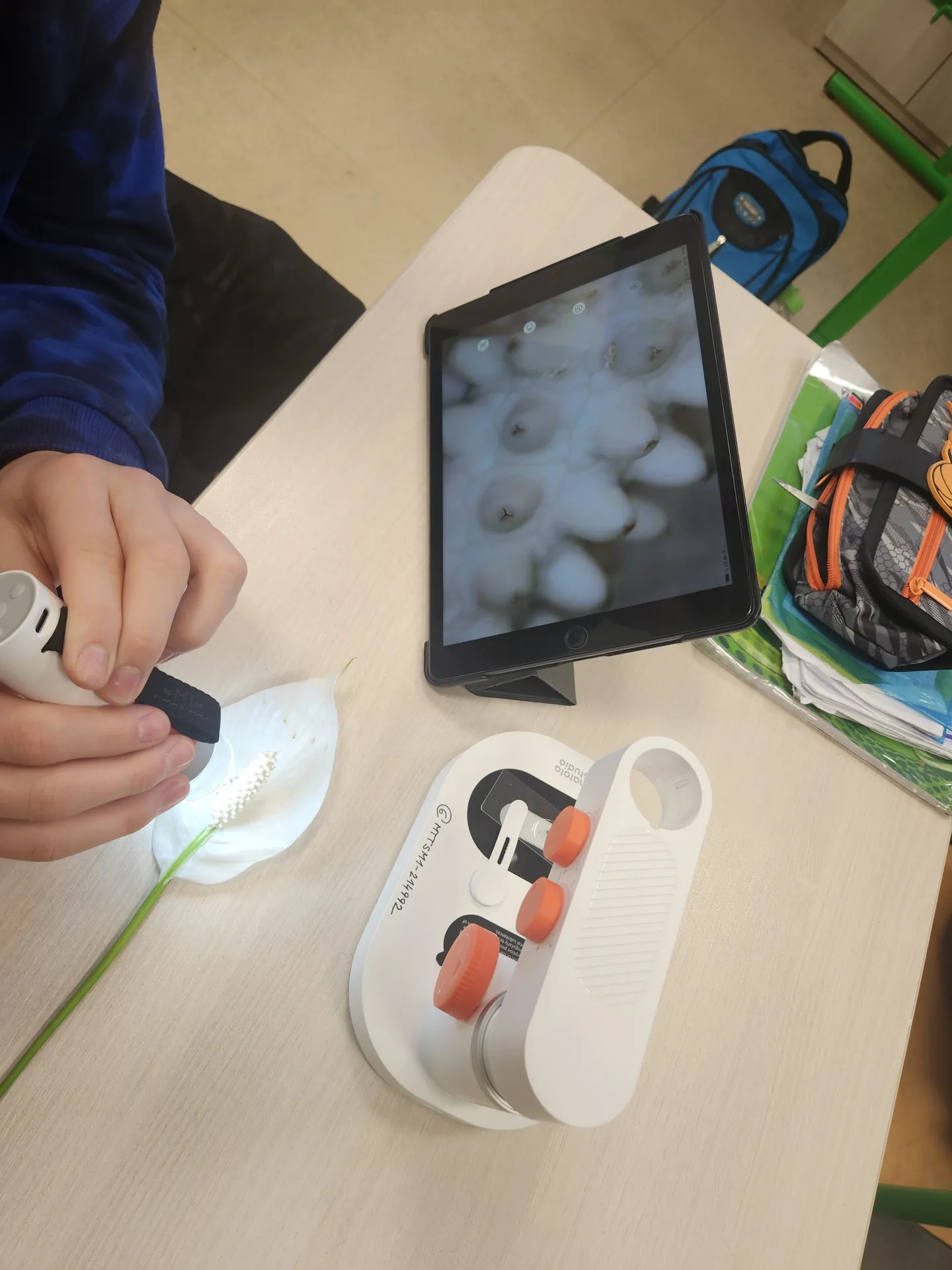 Sedmáci pozorovali různé druhy květů digitálním lupou, která jim vše zobrazila v aplikaci Matataexplore na tabletu nebo telefonu. Věděli jste třeba, že květy jsou vlastně pohlavní orgány rostlin? Uvnitř jsou samčí tyčinky s pylem a samičí vajíčka v pestíku. Více v galerii.