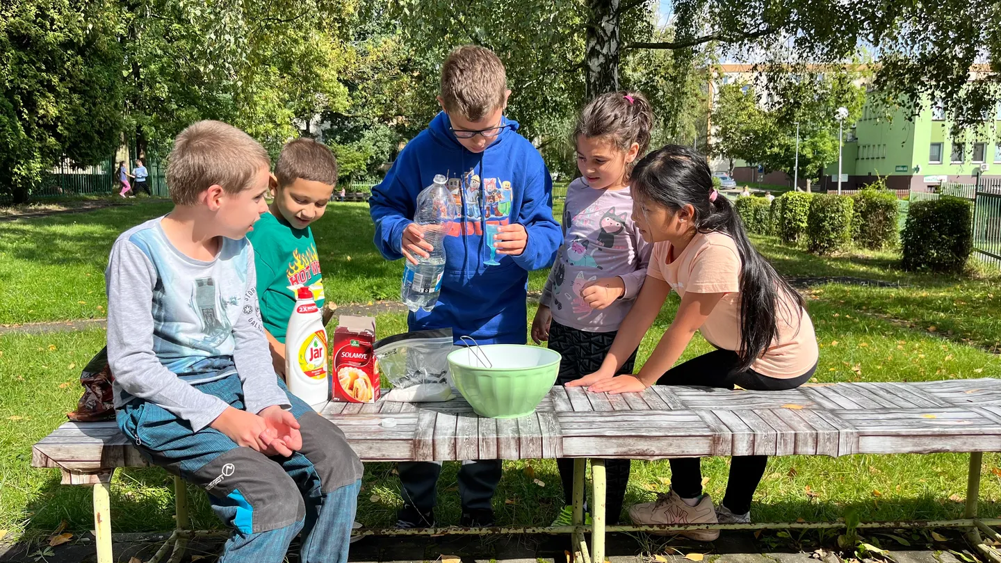 Společně jsme si vyrobili vlastní domácí bublifuk a nadšení z obřích bublinek nebralo konce.