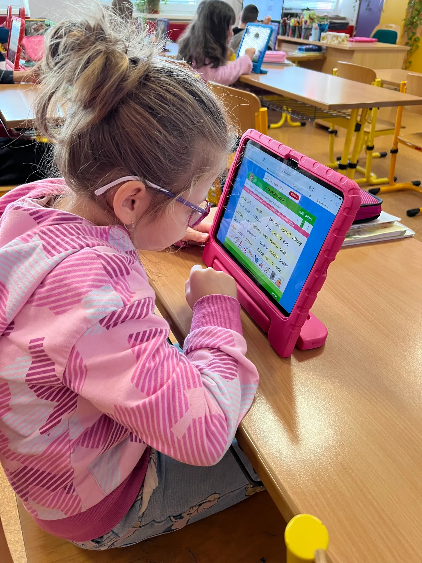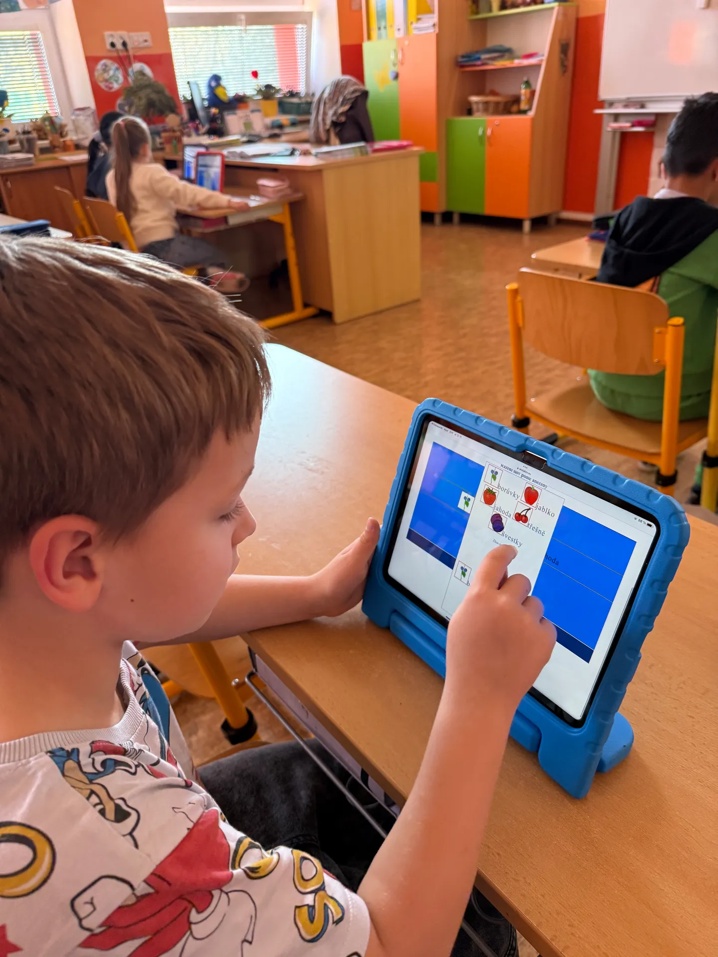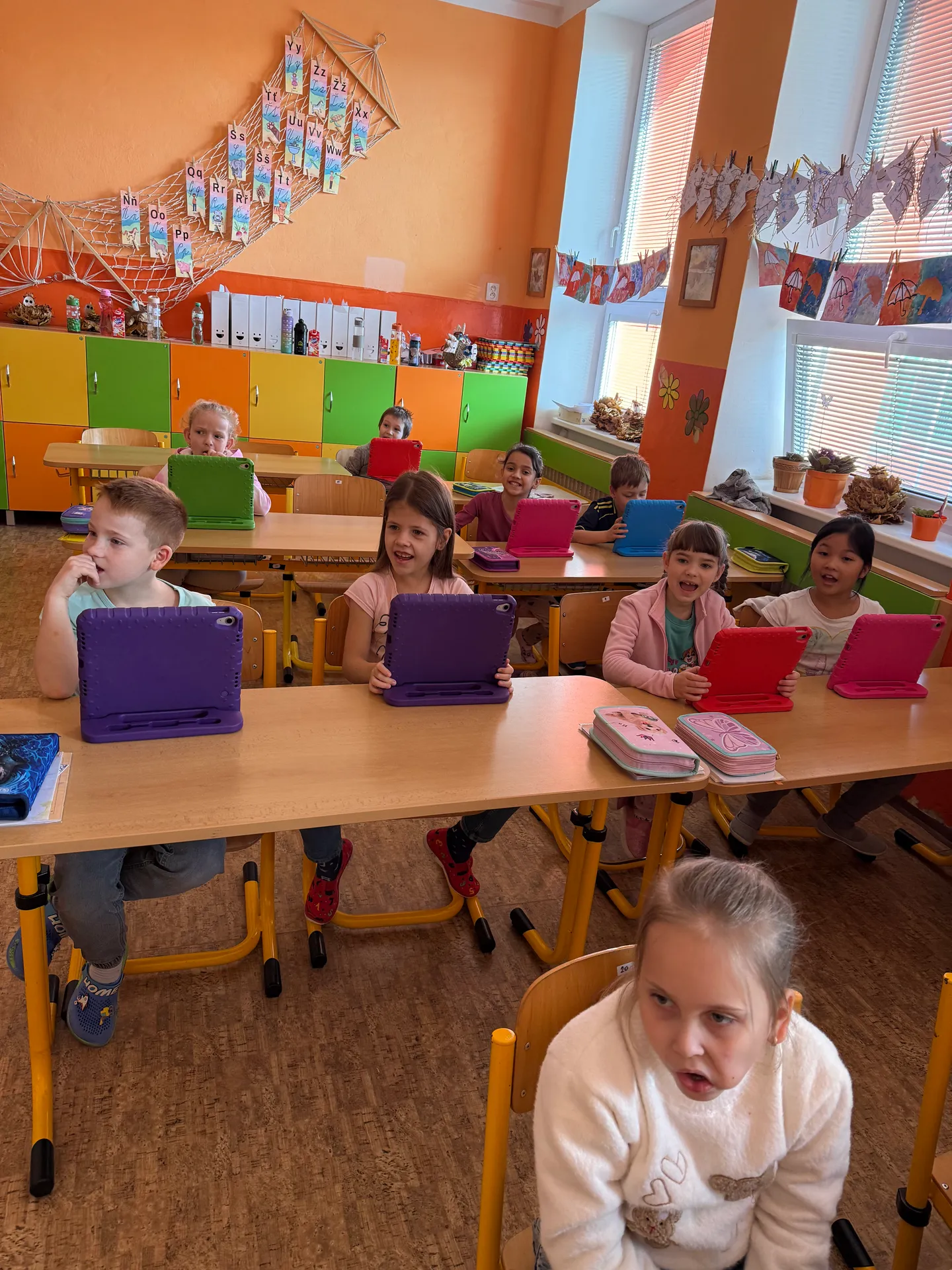 Druháci použili k procvičování českého jazyka iPady. Práce na nich se jim velice líbila. Museli se naučit zapnout iPad, najít aplikaci fotoaparátu, kde si jeho prostřednictvím naučili skenovat QR kódy, které skrývaly různé úkoly.