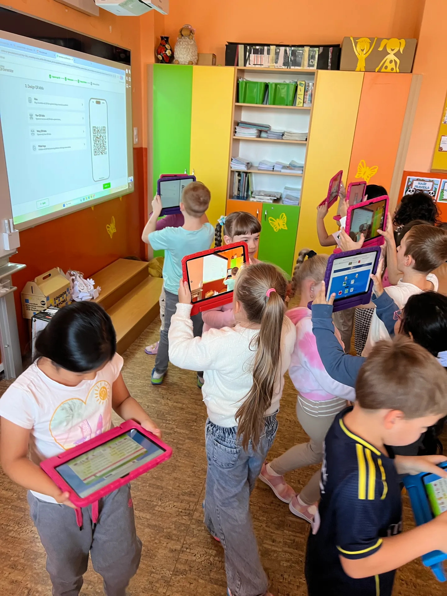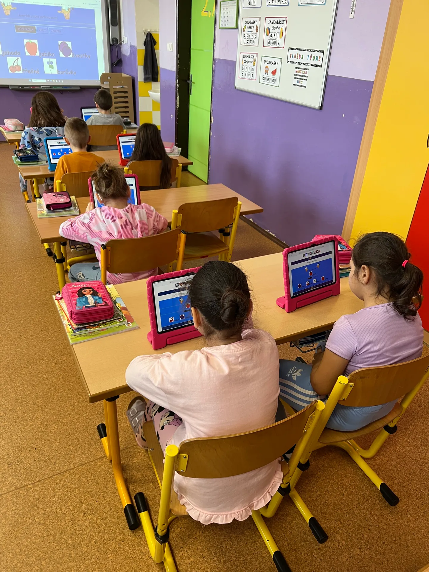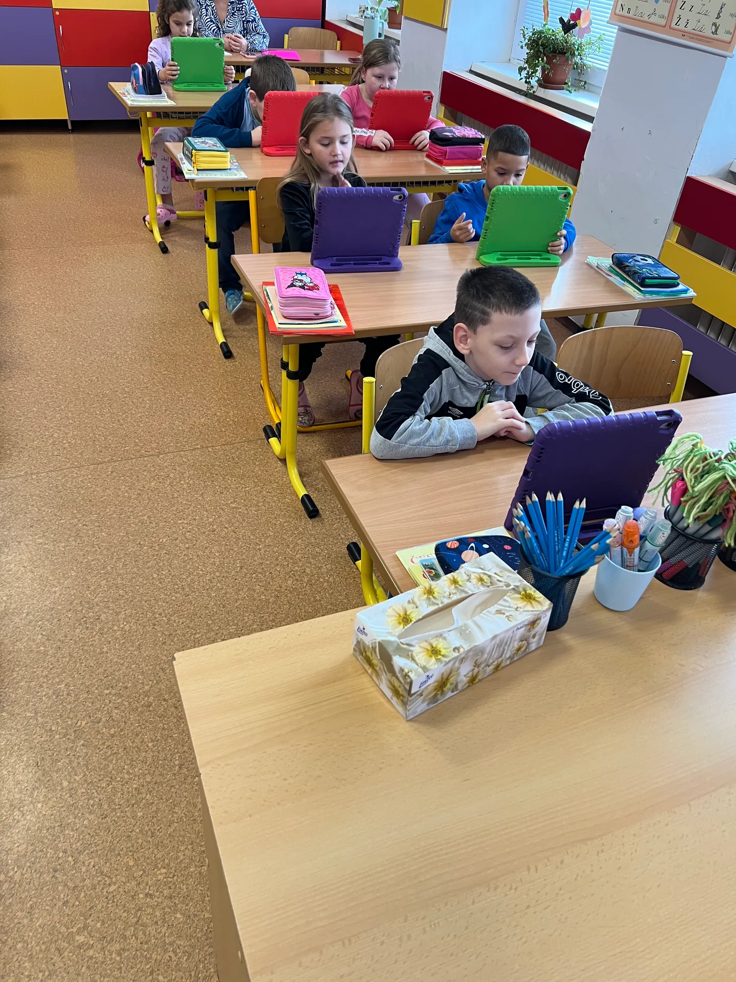 Druháci použili k procvičování českého jazyka iPady. Práce na nich se jim velice líbila. Museli se naučit zapnout iPad, najít aplikaci fotoaparátu, kde si jeho prostřednictvím naučili skenovat QR kódy, které skrývaly různé úkoly.