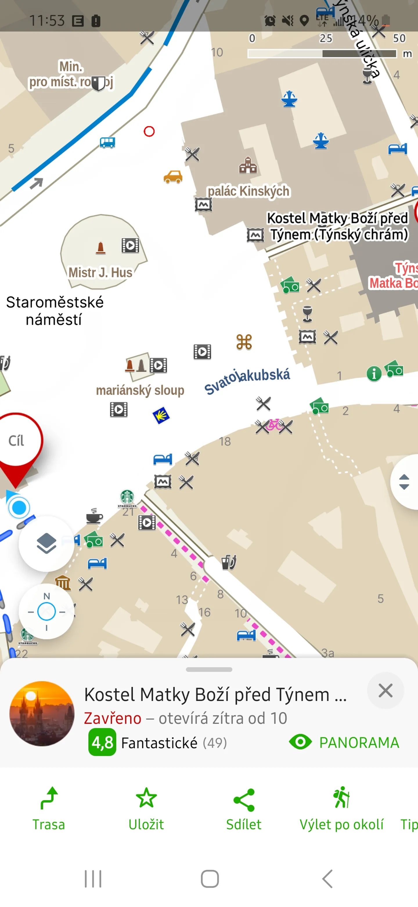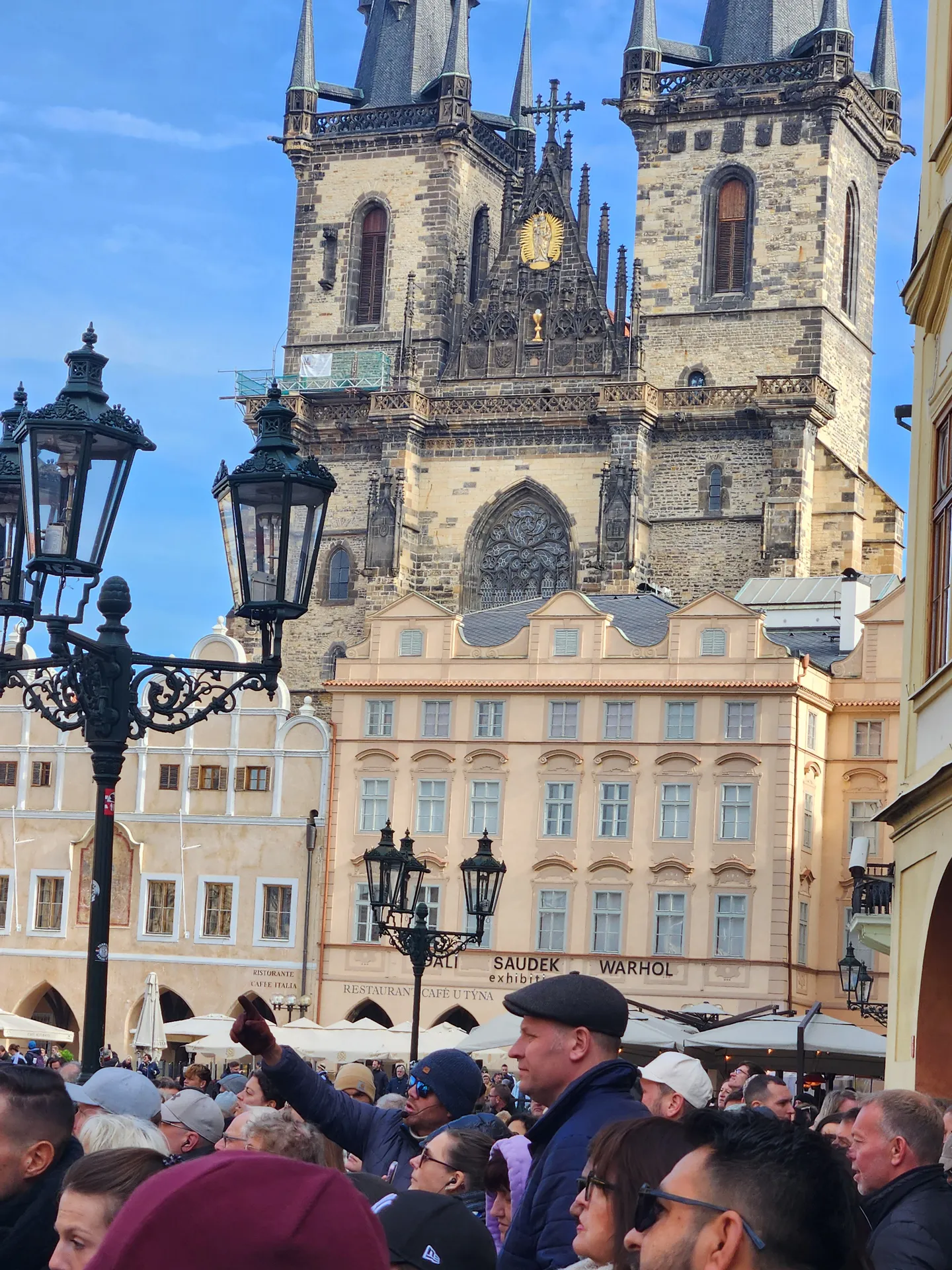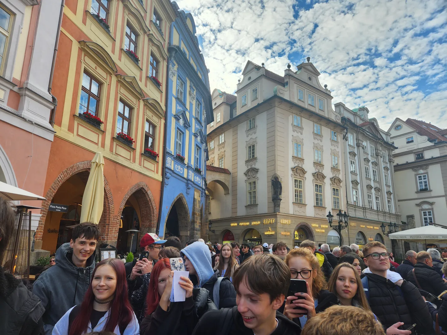 Dále jsme se prošli přes Václavské náměstí Karlovou ulicí až na Staroměstské náměstí s Týnským chrámem a Pražským orlojem.