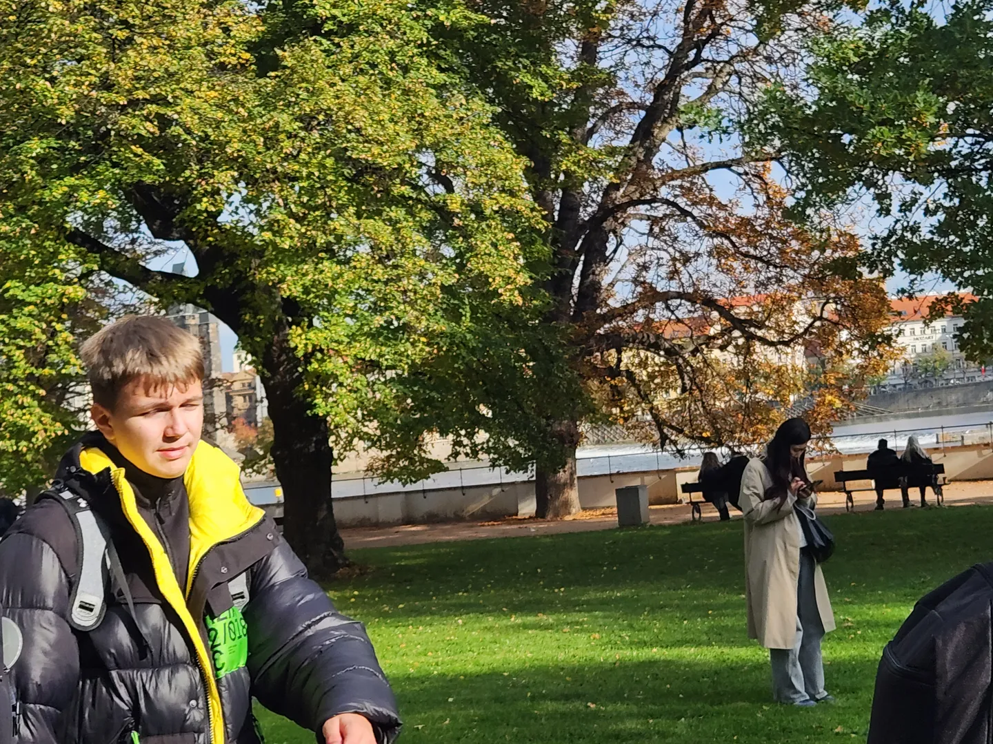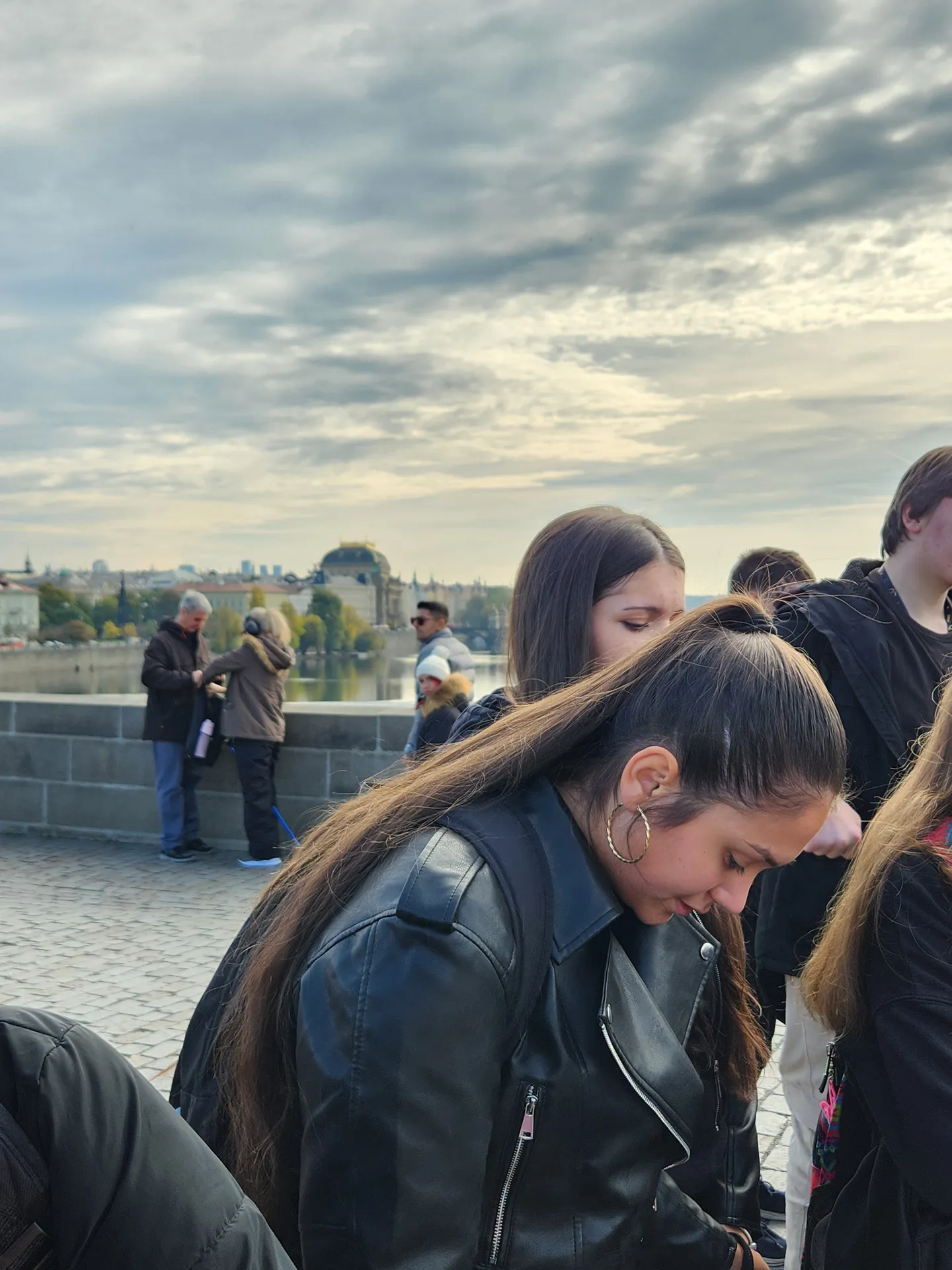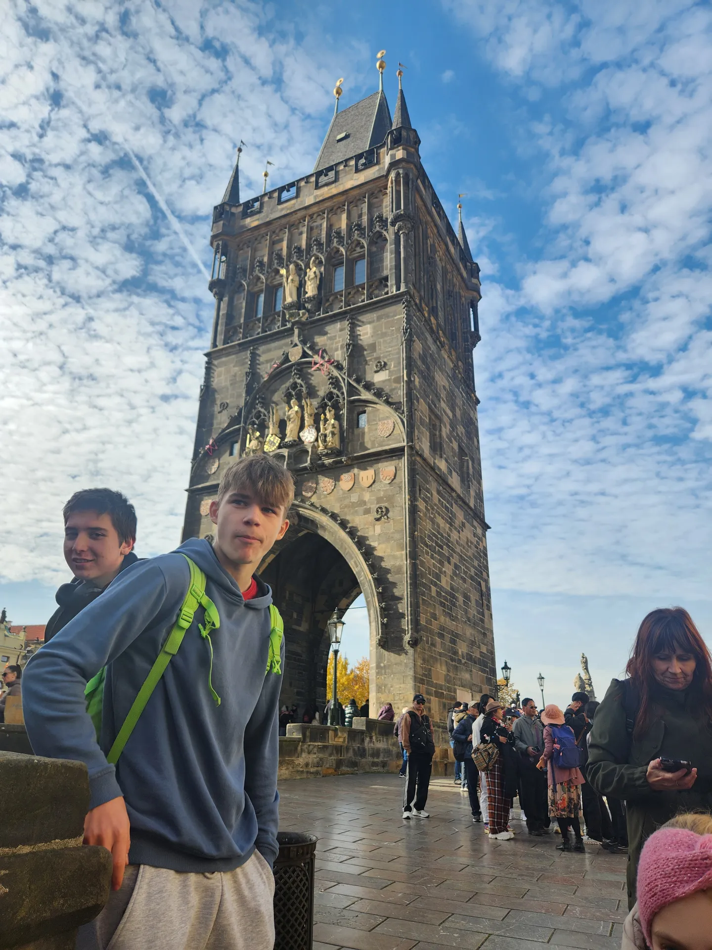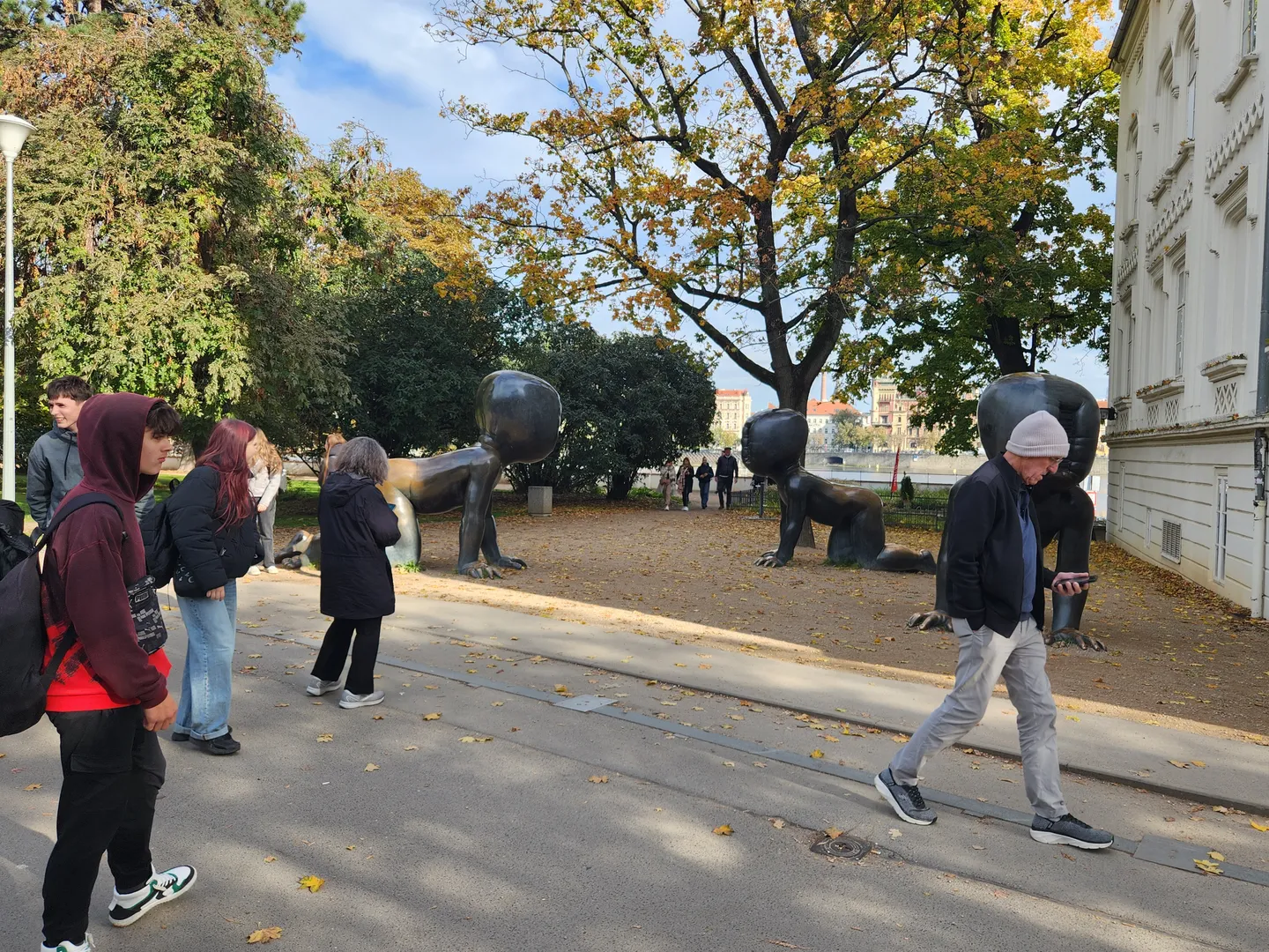 Po doplnění energie na nás čekal u sochy Karla IV. pan Nebeský s devadesáti minutovou akční hrou Praha hravě aneb rychlovka na Karlově mostě a bojovka na Kampě. Žáky čekaly kromě úkolů a zlaťáků také rychlé přesuny, každému se jistě do paměti vryla věta našeho průvodce: "Excuse me..., school...," kdy jsme se prodírali davy turistů ve svižném tempu na další soutěžní stanoviště.