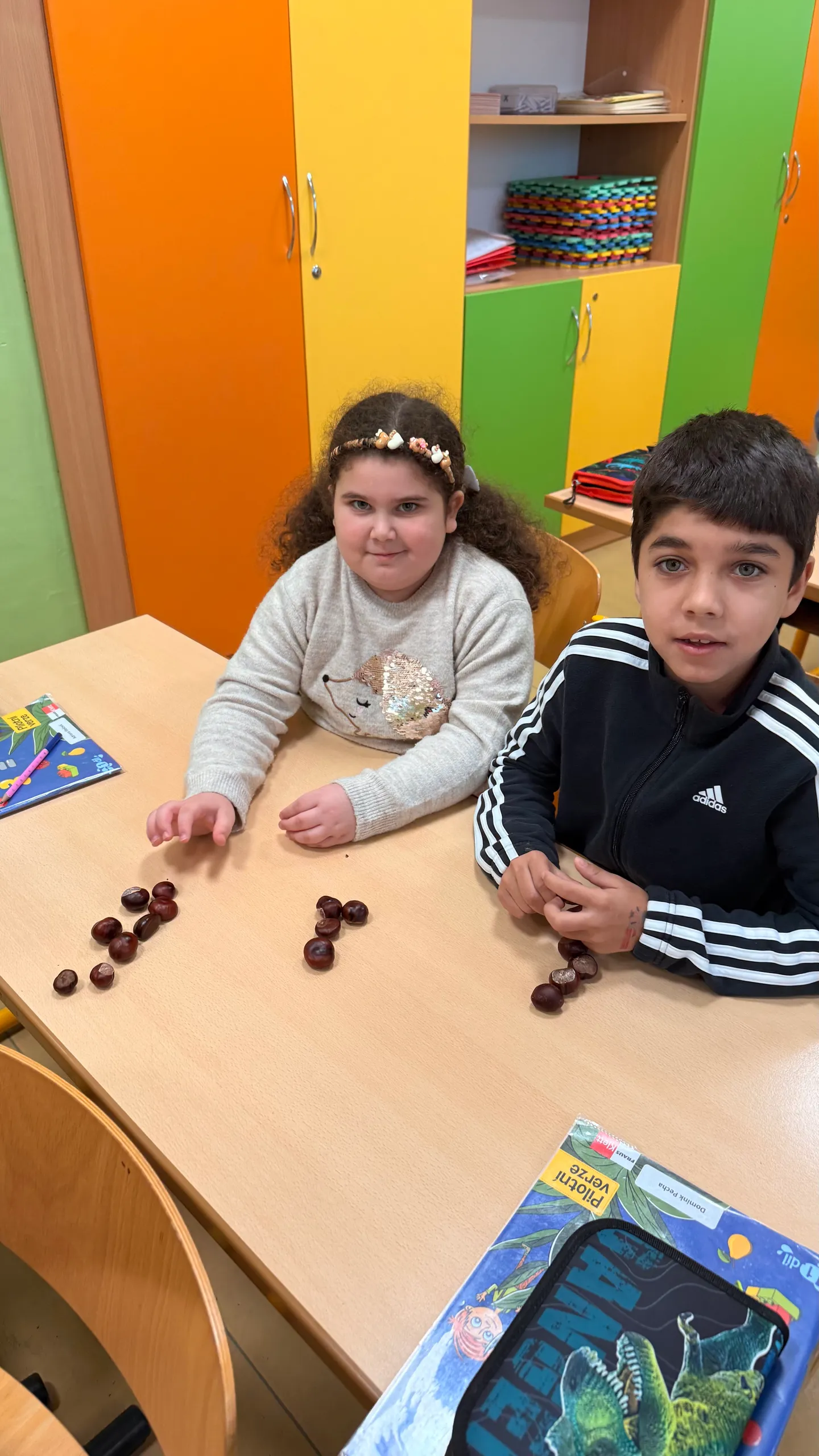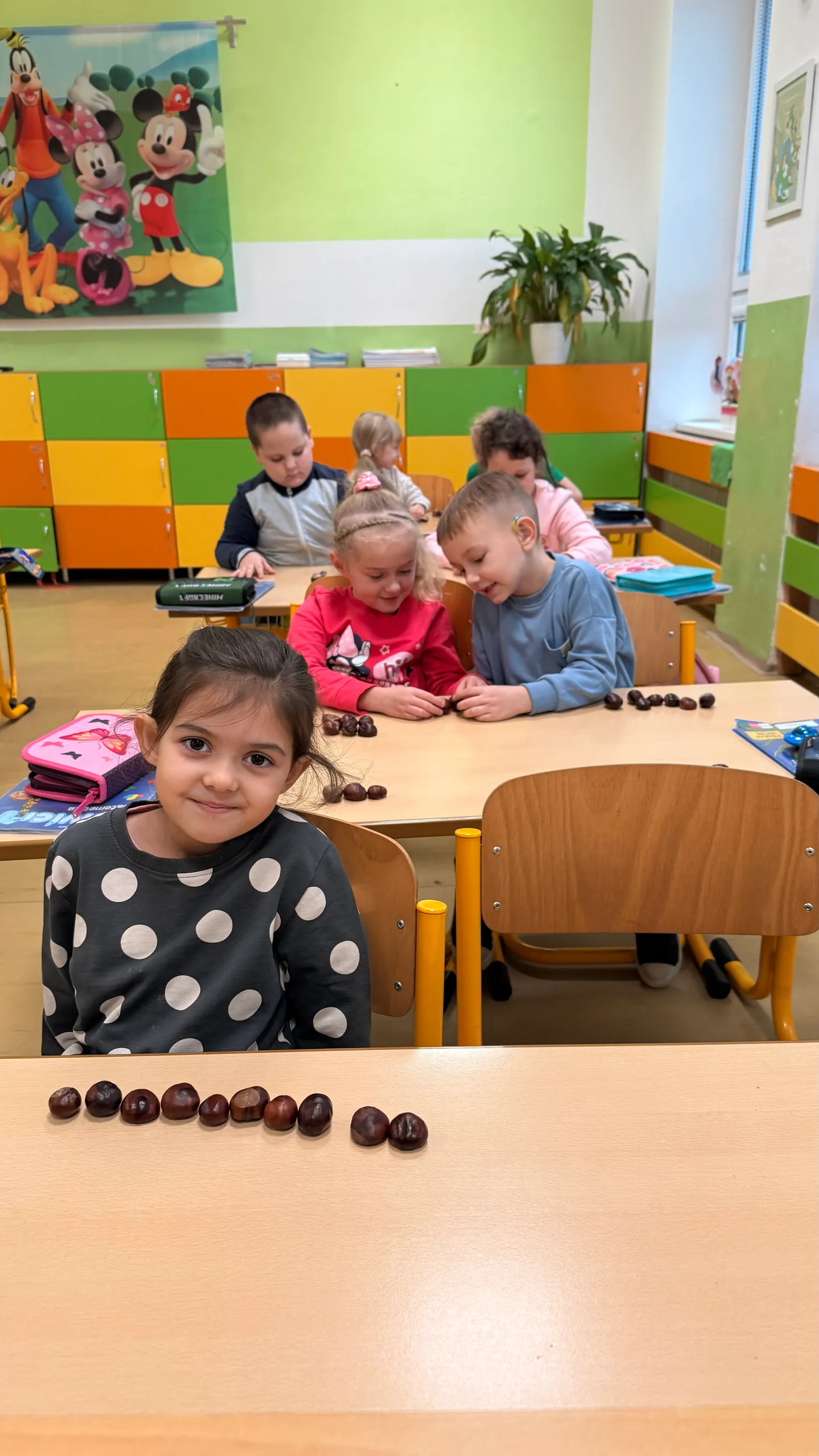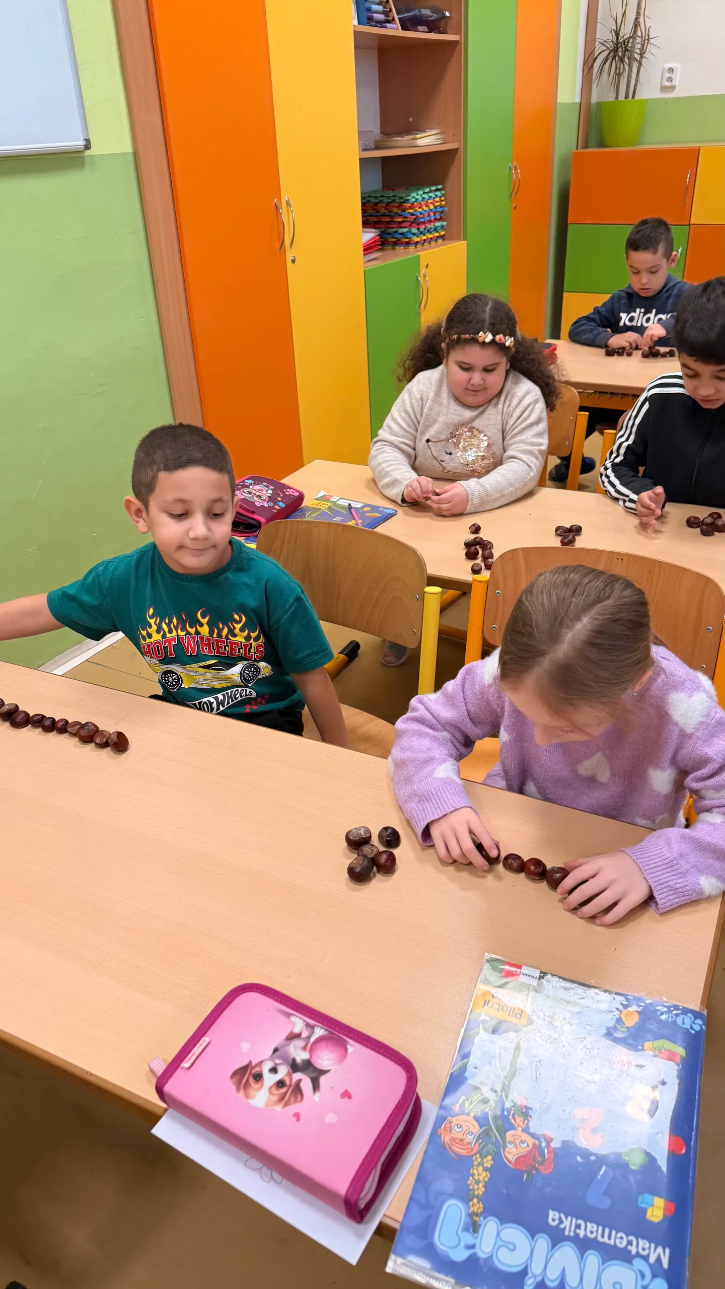 Pomocí kaštanu jsme sčítali, odčítali, porovnávali, co je **víc a co míň**, a objevovali, že i matematika může být zábava.