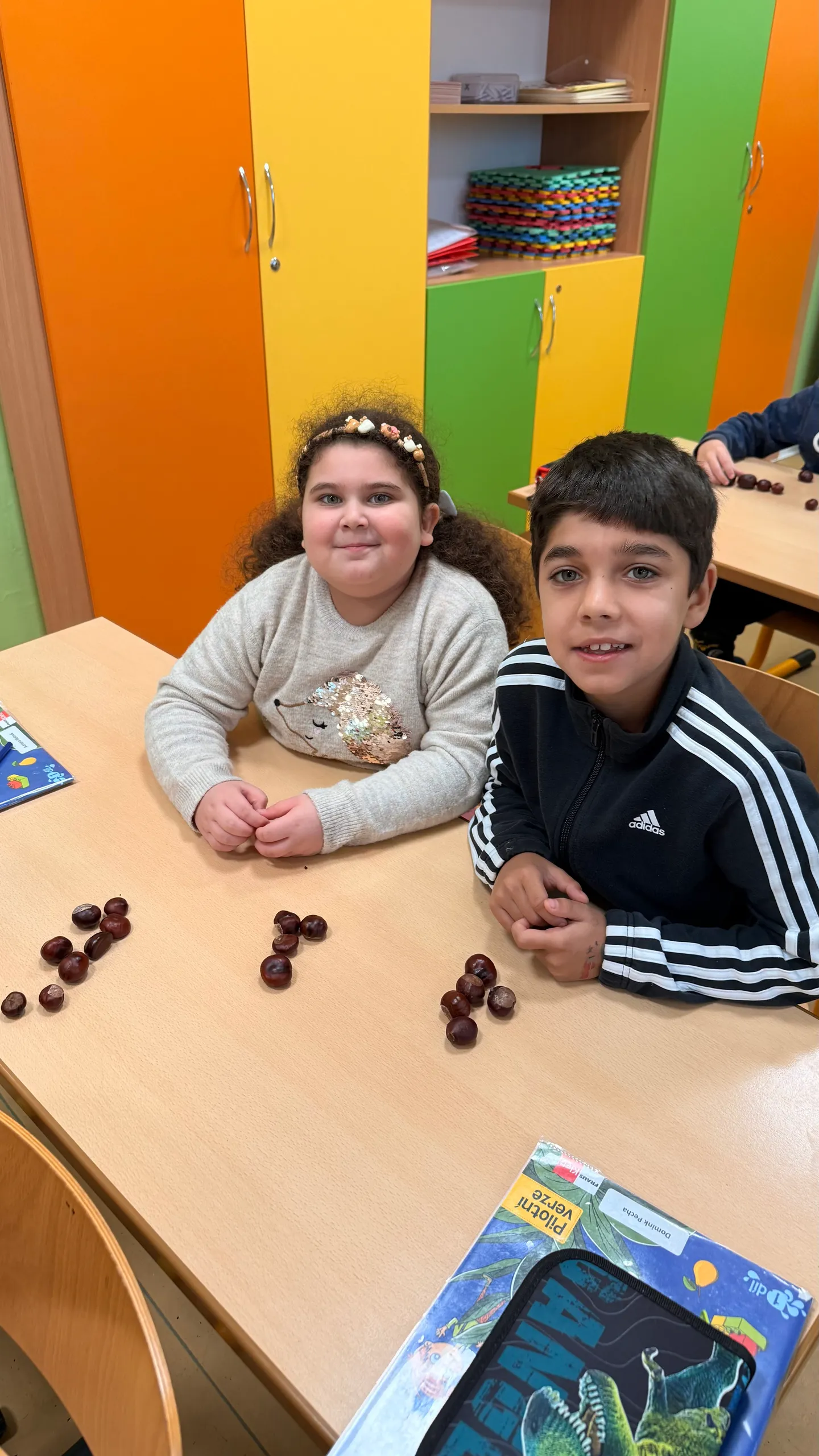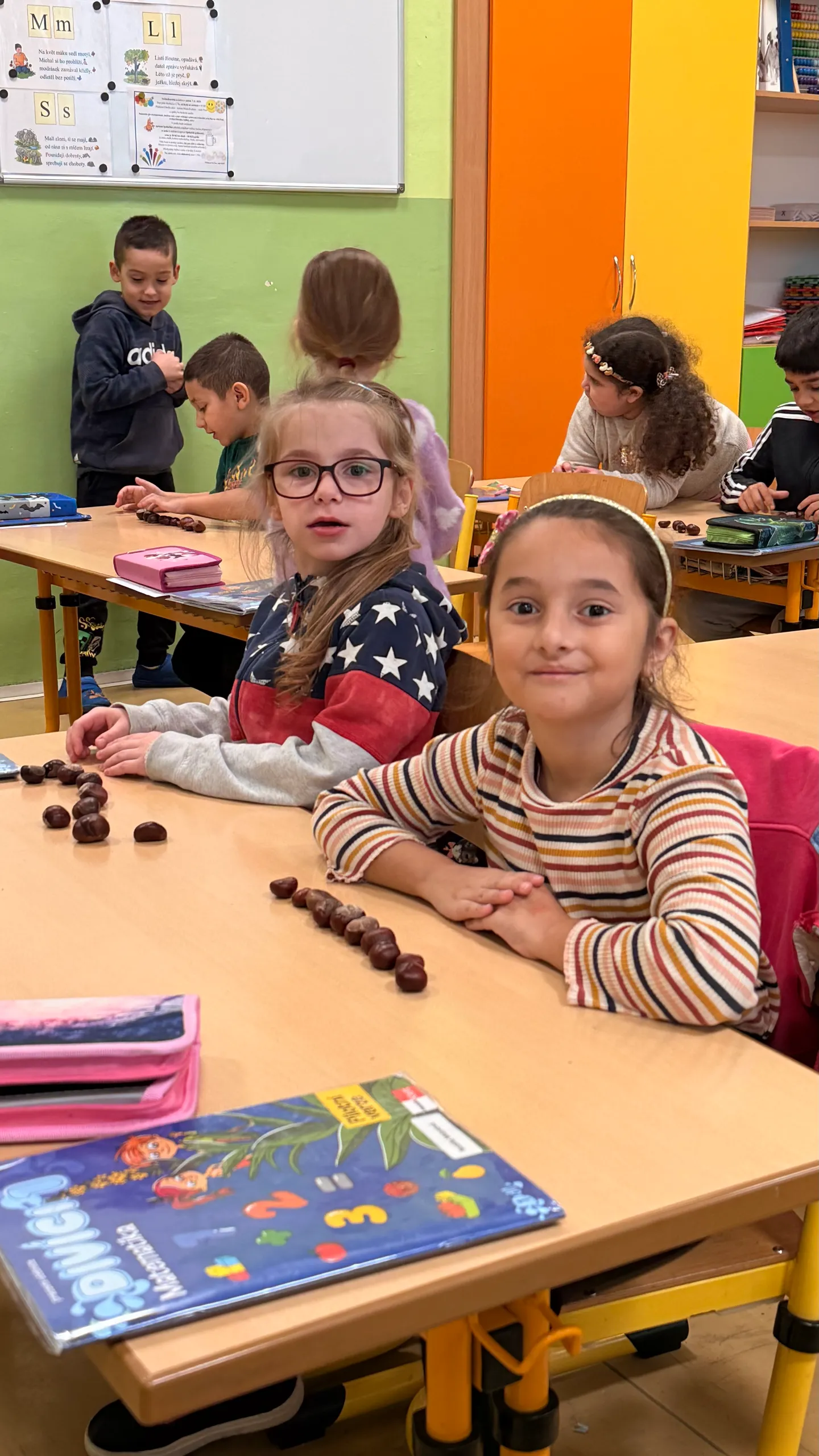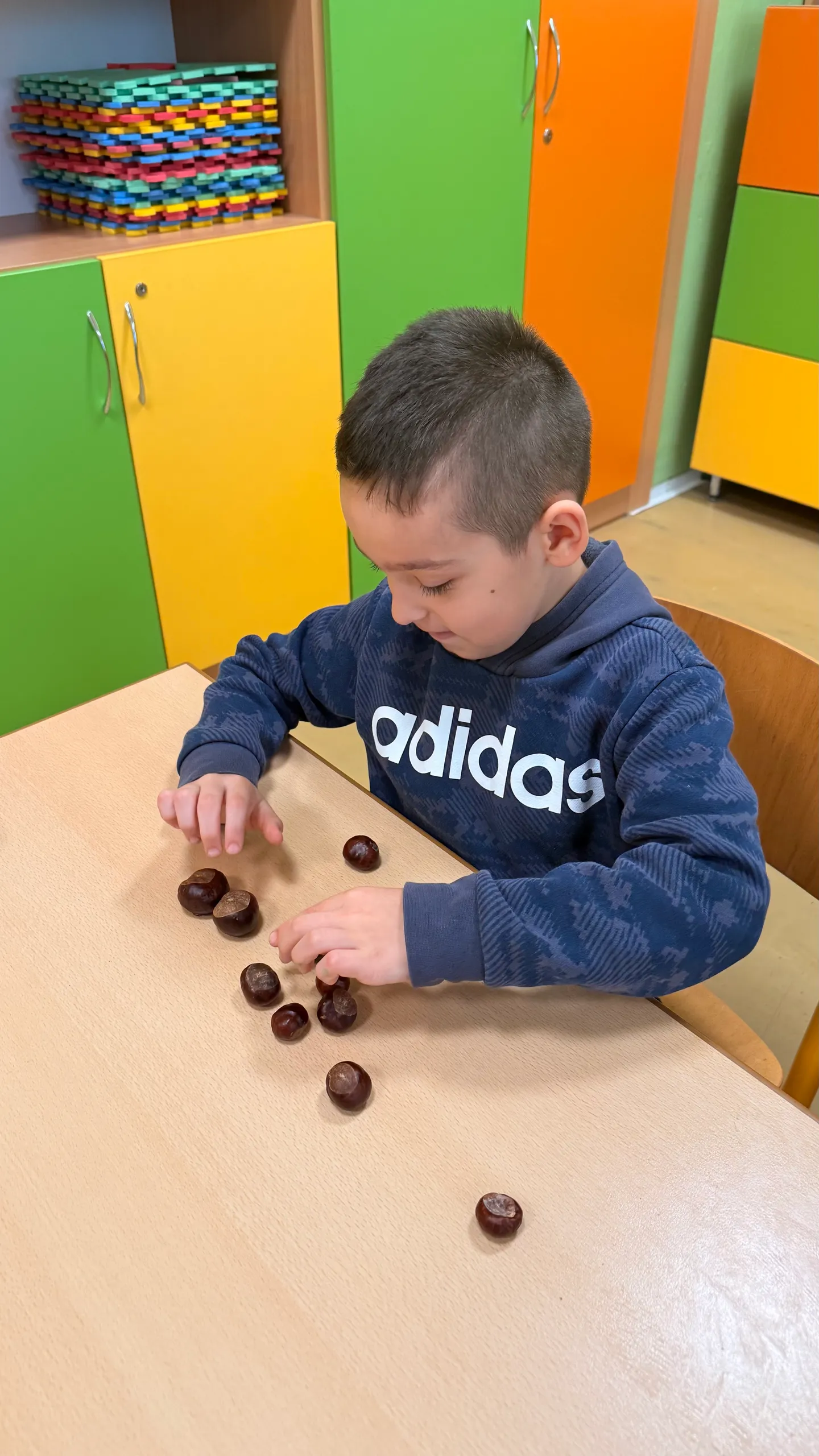 Pomocí kaštanu jsme sčítali, odčítali, porovnávali, co je **víc a co míň**, a objevovali, že i matematika může být zábava.