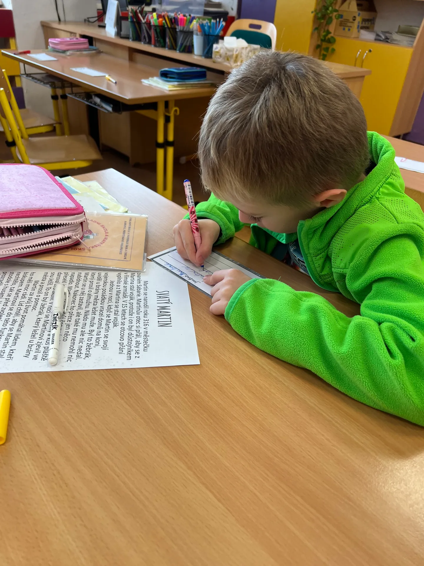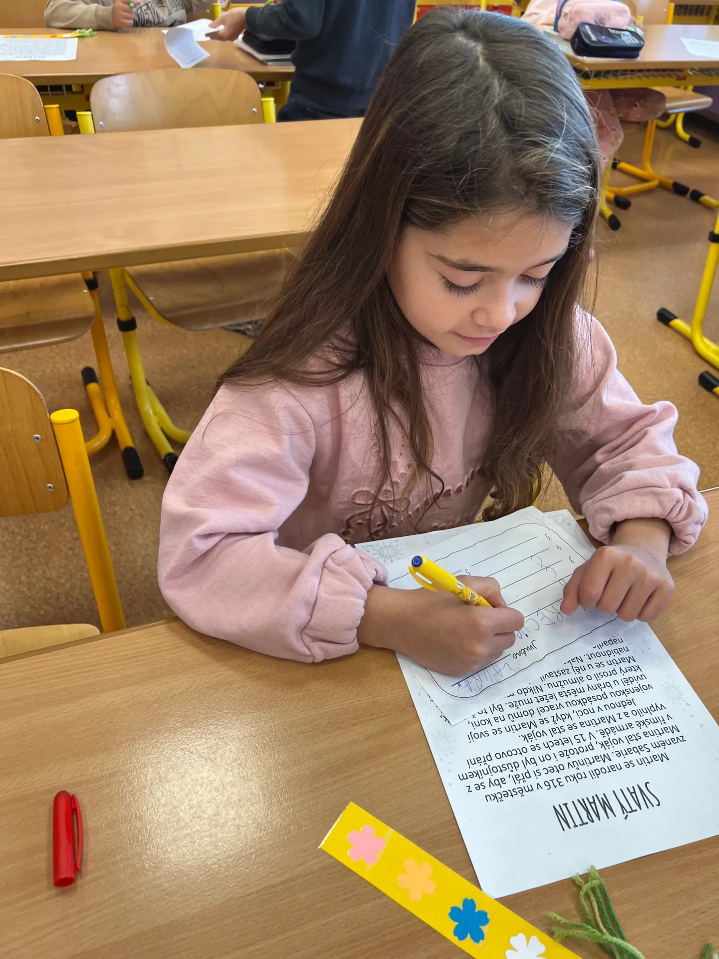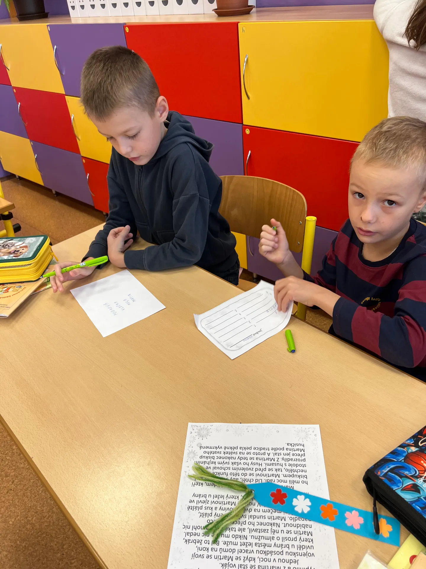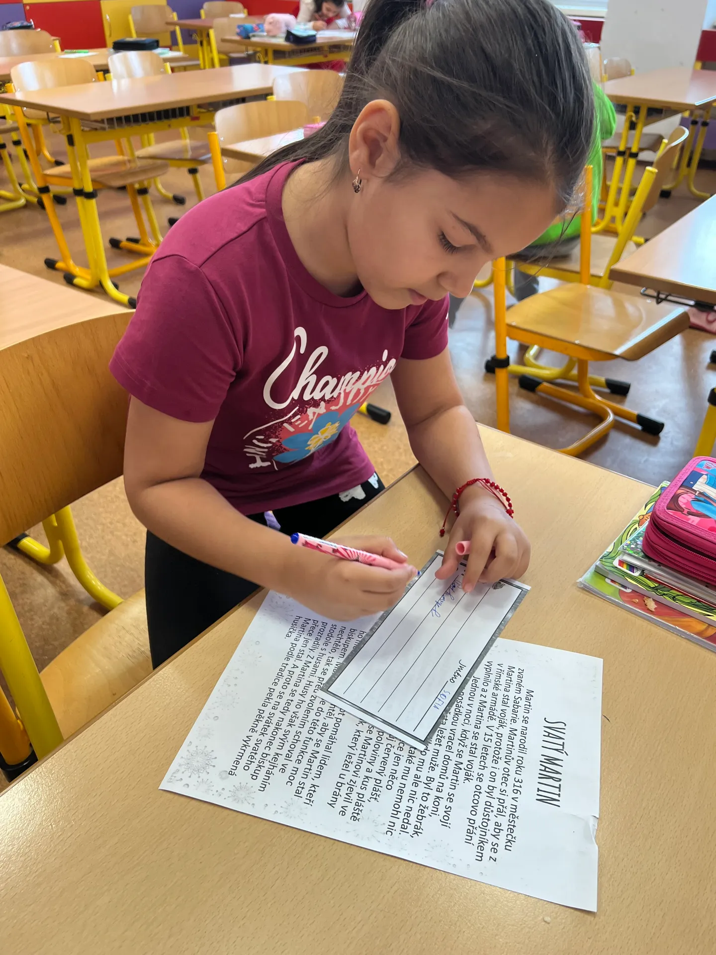 Žáci 2.A a 2.B si připomněli sv. Martina projektovým dnem. Během něho si přečetli legendu, která je seznámila s příběhem o životě Martina, pracovali s abecedou, hledali a přepisovali věty, řešili matematické rébusy a vytvořili si bílého koně.