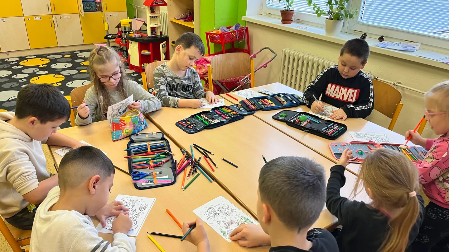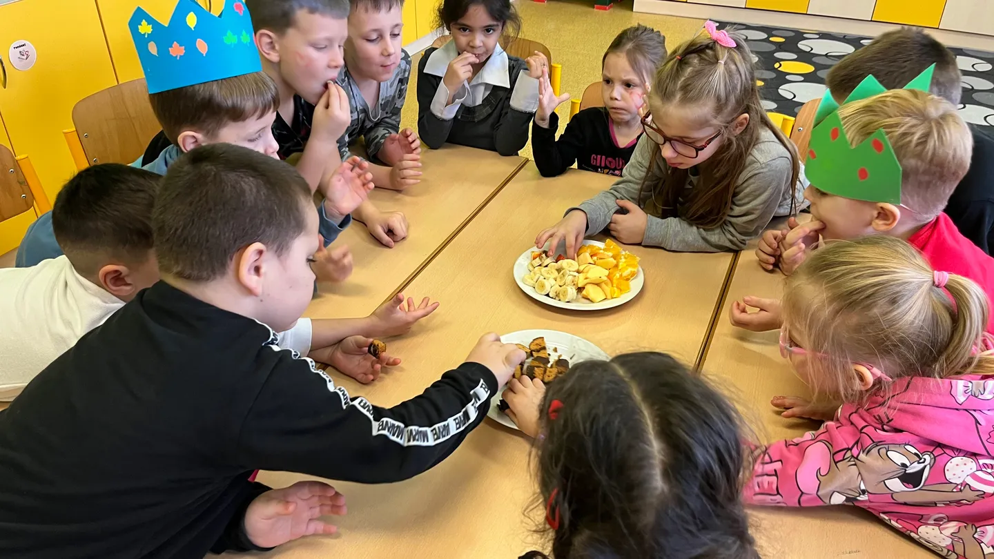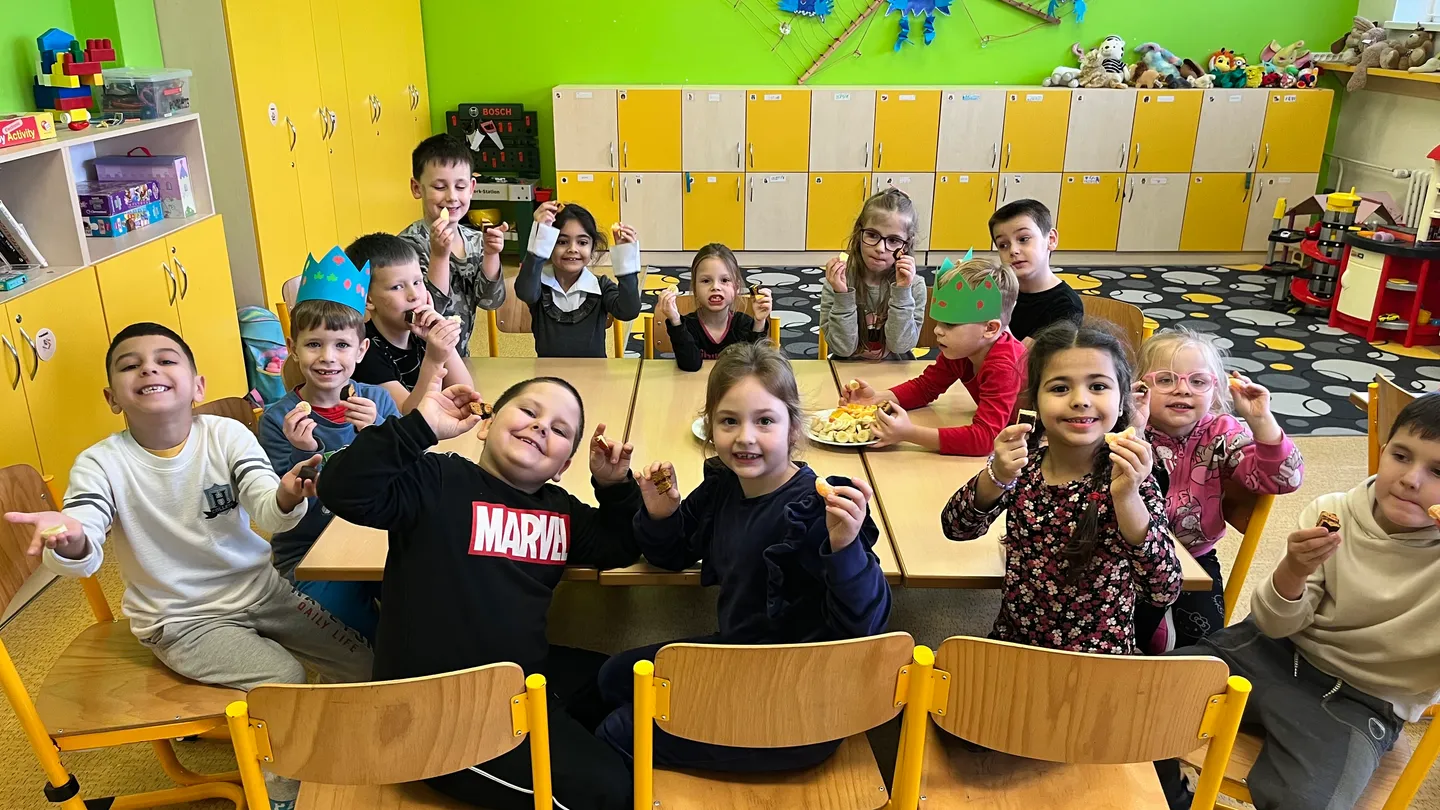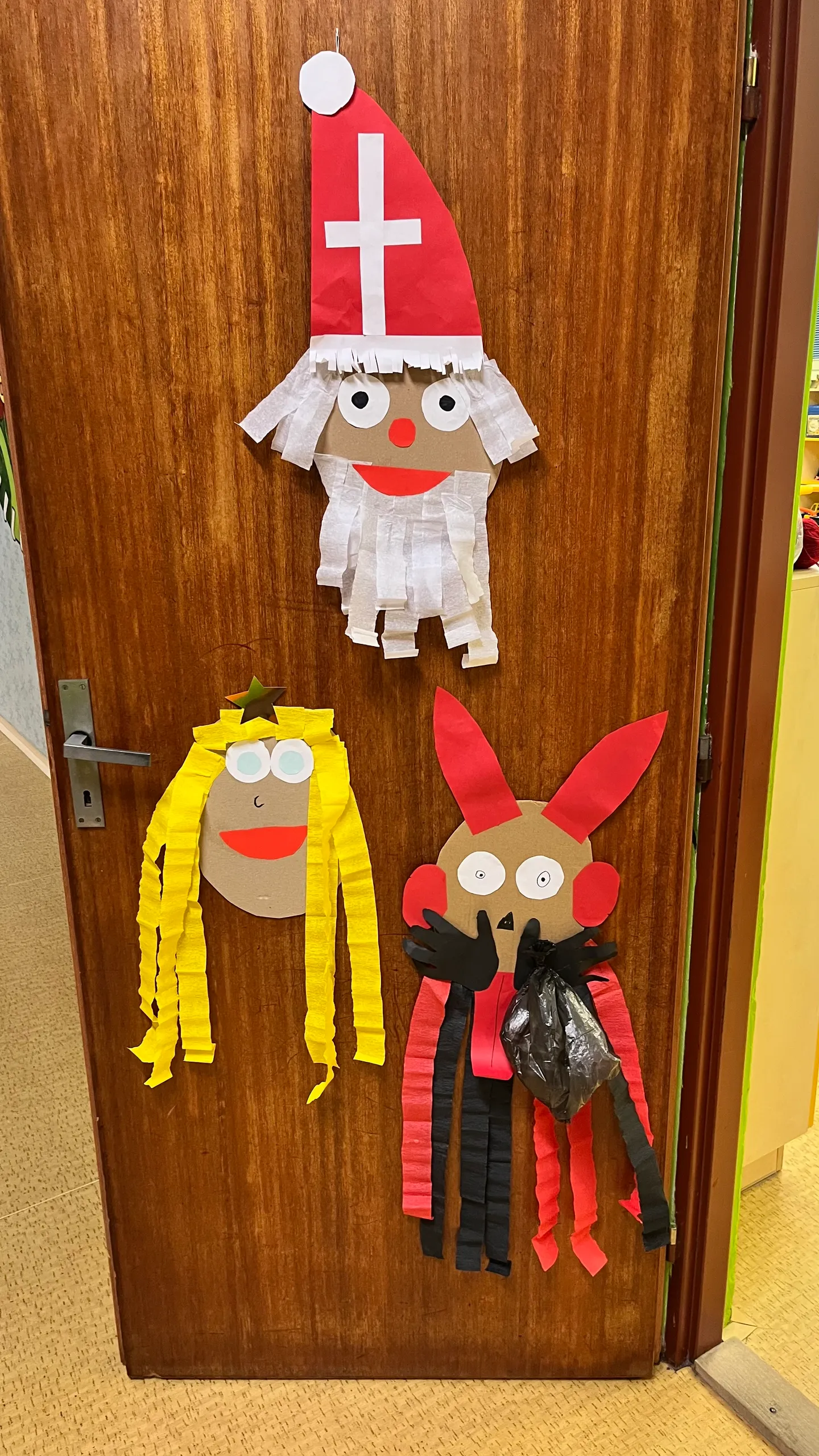 Dnešek se nesl v mikulášském duchu. Děti si užily nadílku, pochutnaly si na ovocném talíři i dobrotách z perníčku a pustily se do tvoření. Společně vyrobily čerta, Mikuláše i anděla z kartonu – a právě těmito výrobky jsme si krásně vyzdobili dveře družiny.