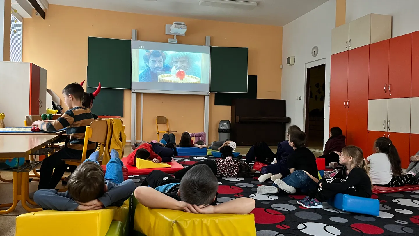 Nechybělo ani vybarvování mikulášských omalovánek a na závěr jsme si pustili oblíbenou pohádku Anděl Páně 2.