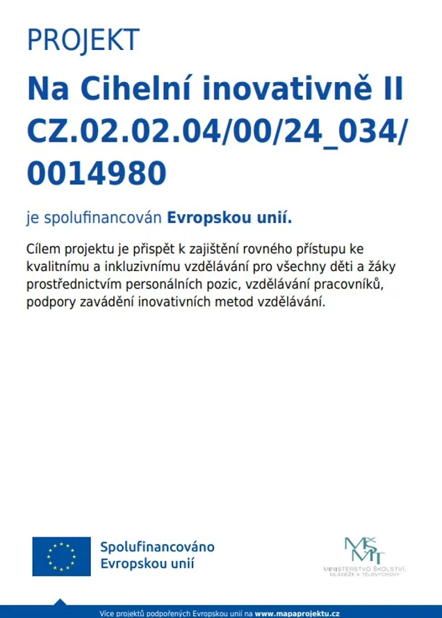 Projekt byl zahájen 1.9.2025 a jeho rozpočet je 1 669 000 Kč. Inovujeme vzdělávání, doučujeme se a financujeme pracovní pozice.