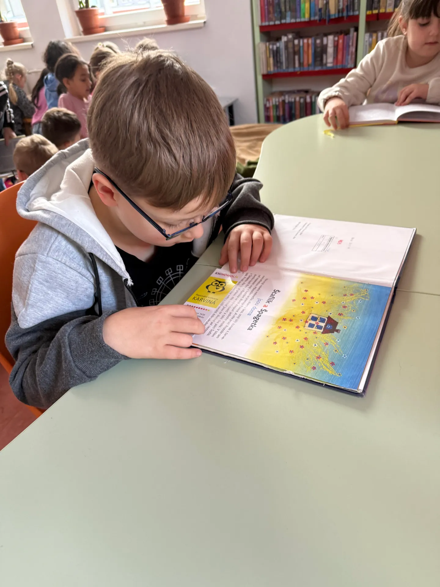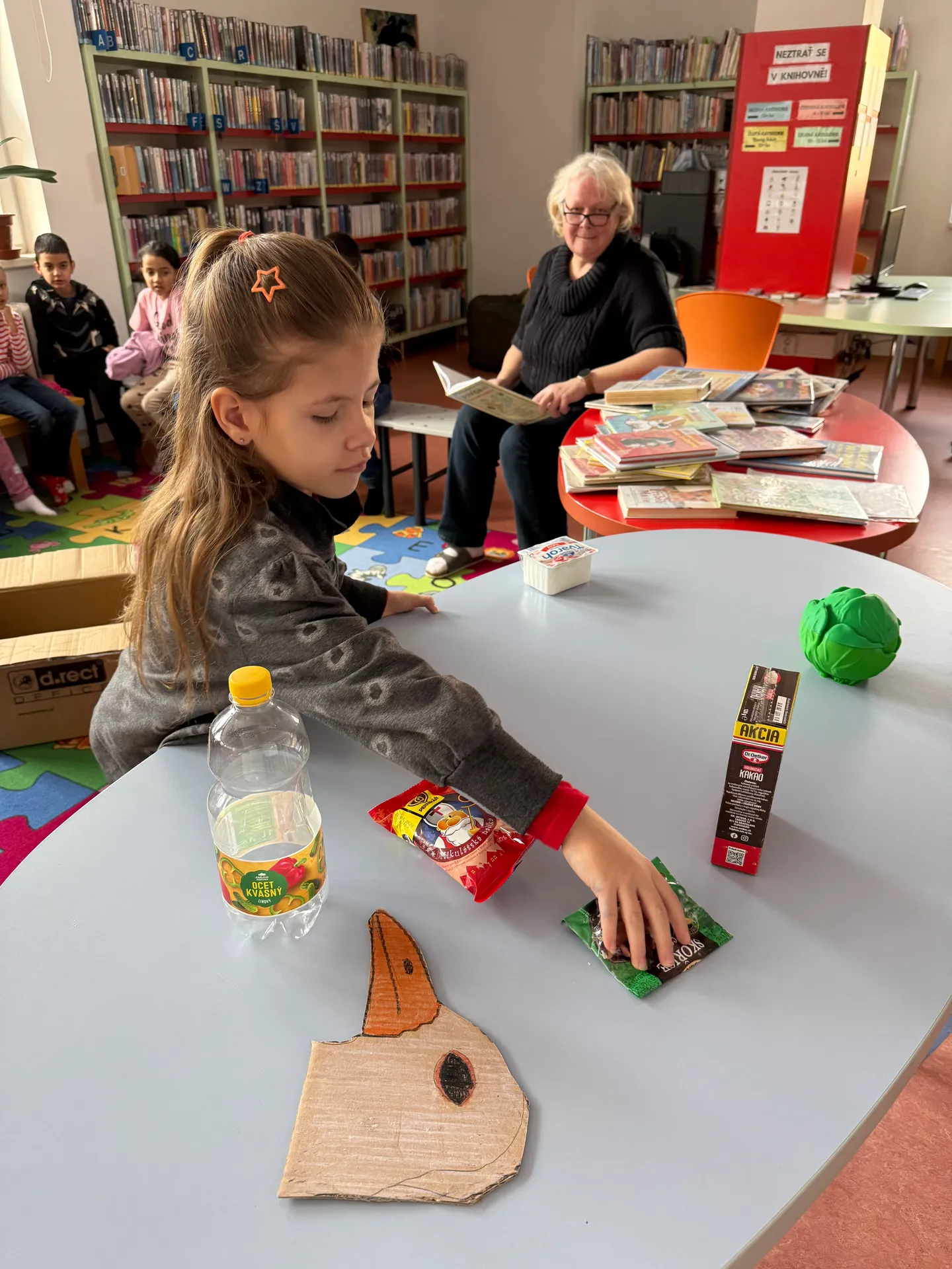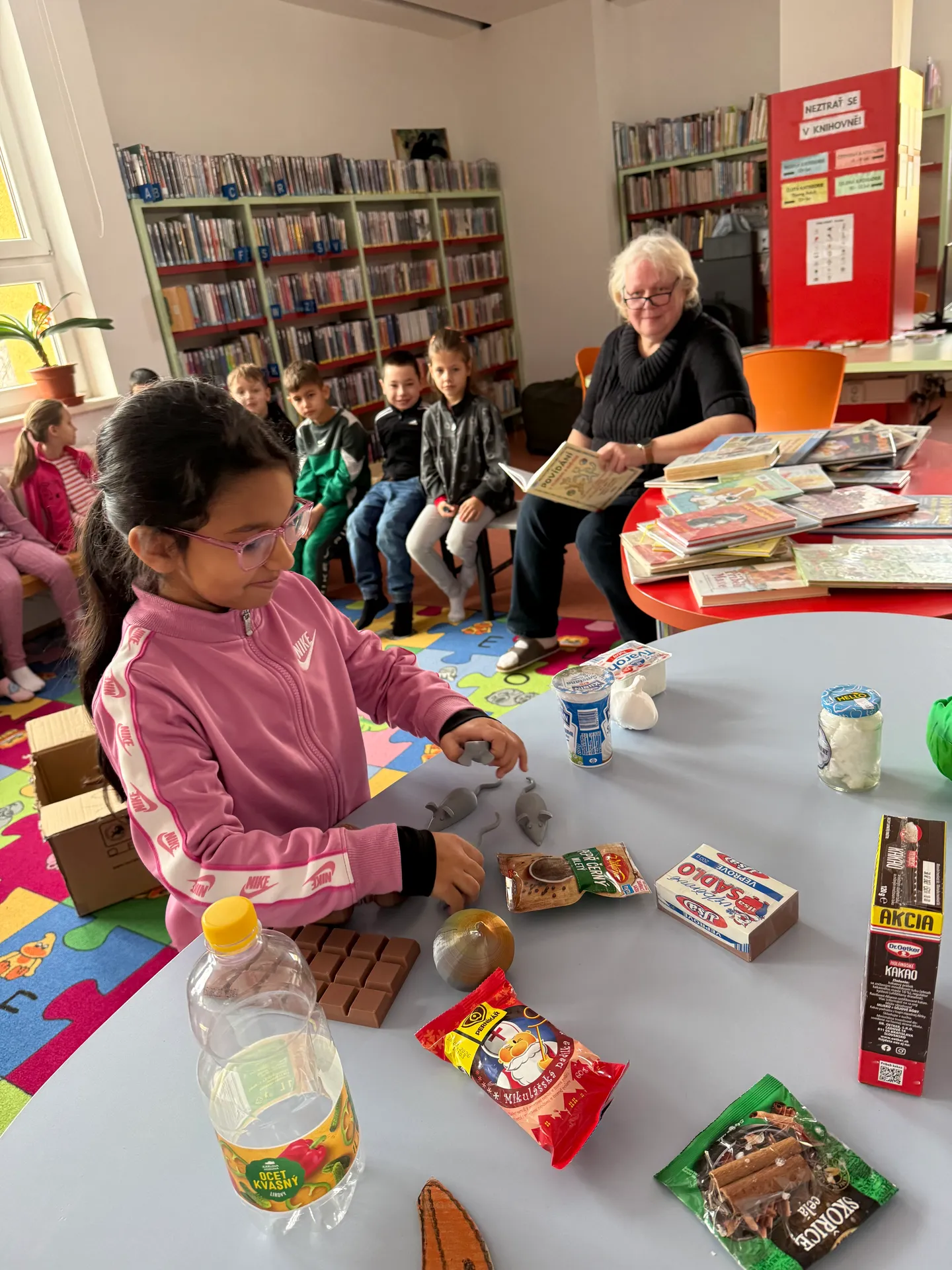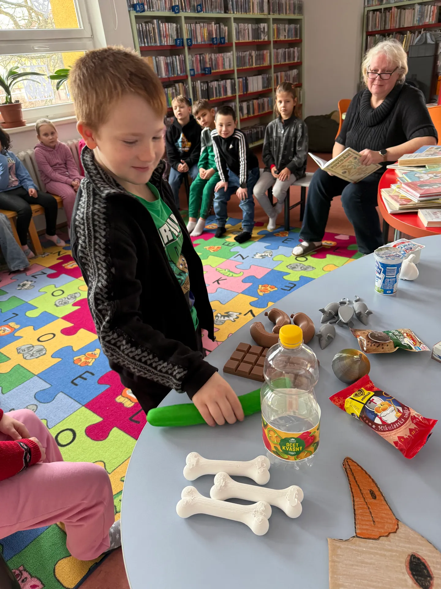 Druháčci navštívili knihovnu, kde pro ně byla připravena beseda o knížce Povídání o pejskovi a kočičce. Poslouchali ukázku z knížky a zjistili, co všechno pejsek a kočička dali do dortu, aby byl nejlepší. Beseda se moc líbila.