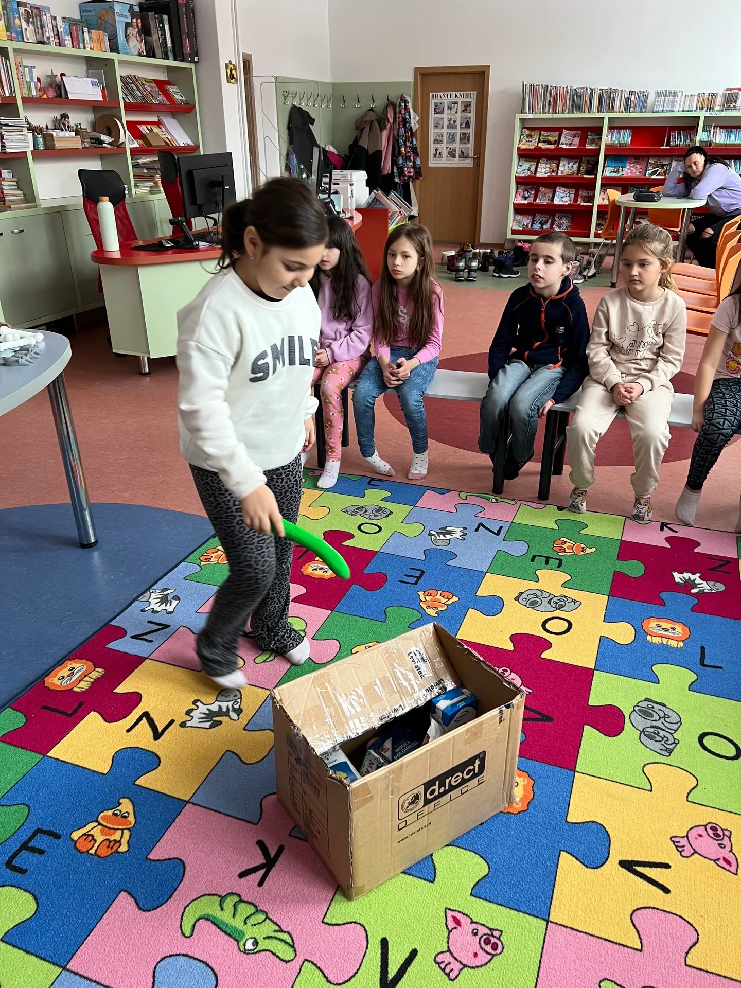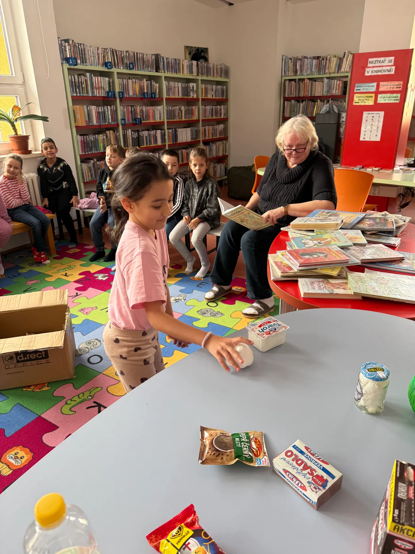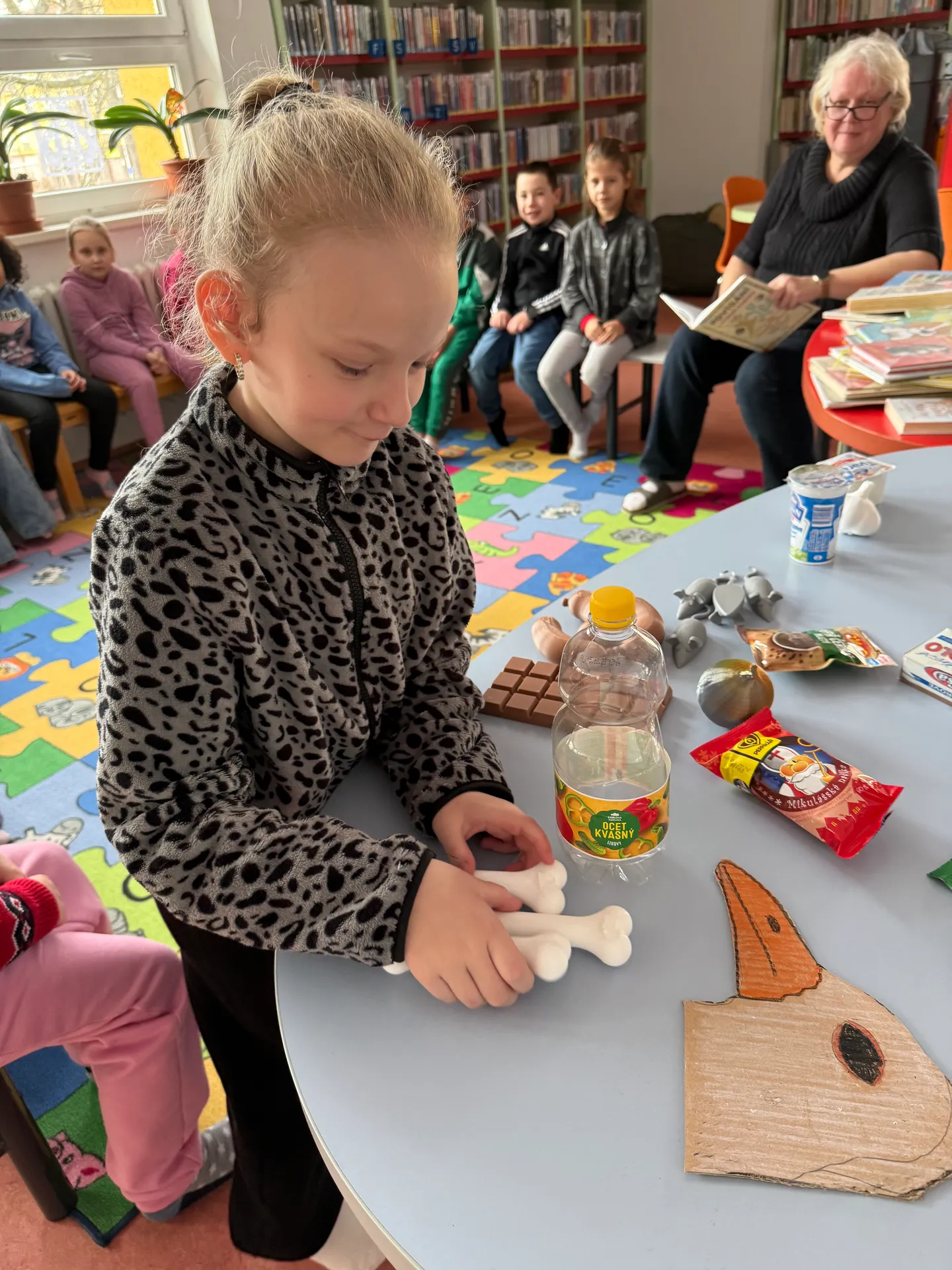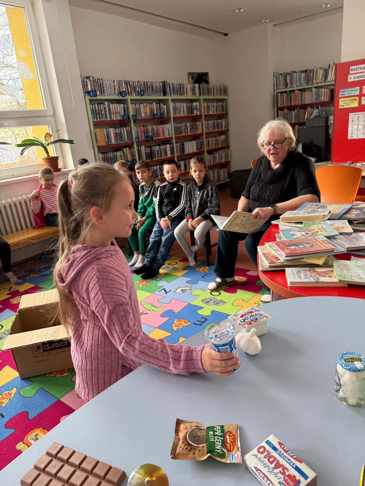 Druháčci navštívili knihovnu, kde pro ně byla připravena beseda o knížce Povídání o pejskovi a kočičce. Poslouchali ukázku z knížky a zjistili, co všechno pejsek a kočička dali do dortu, aby byl nejlepší. Beseda se moc líbila.
