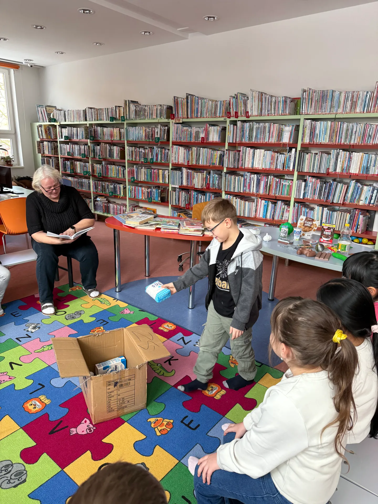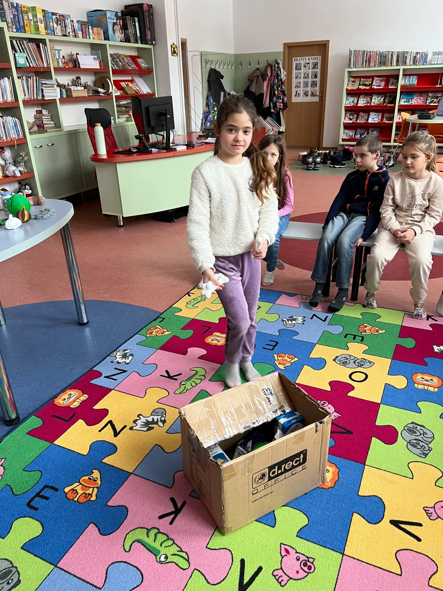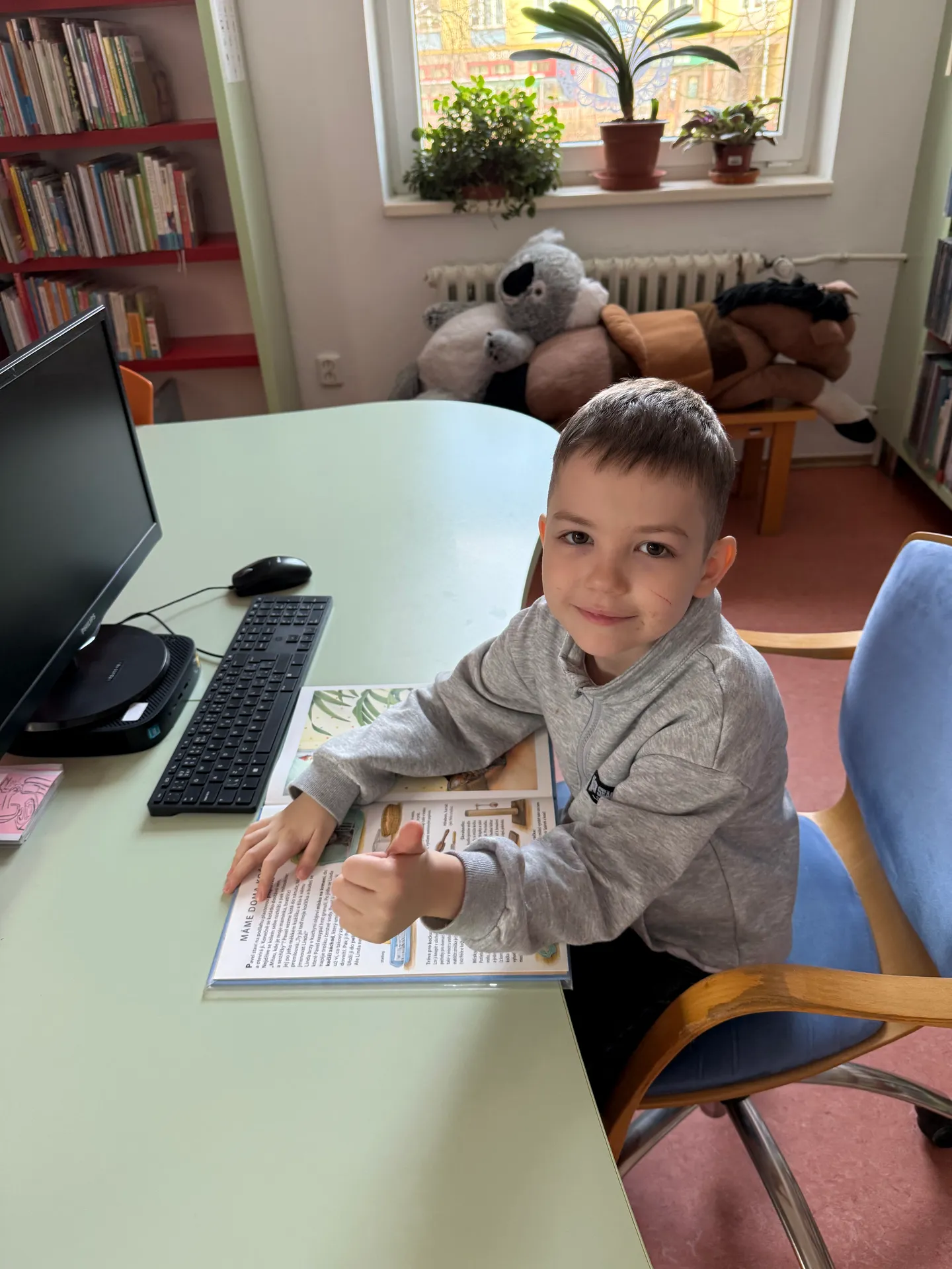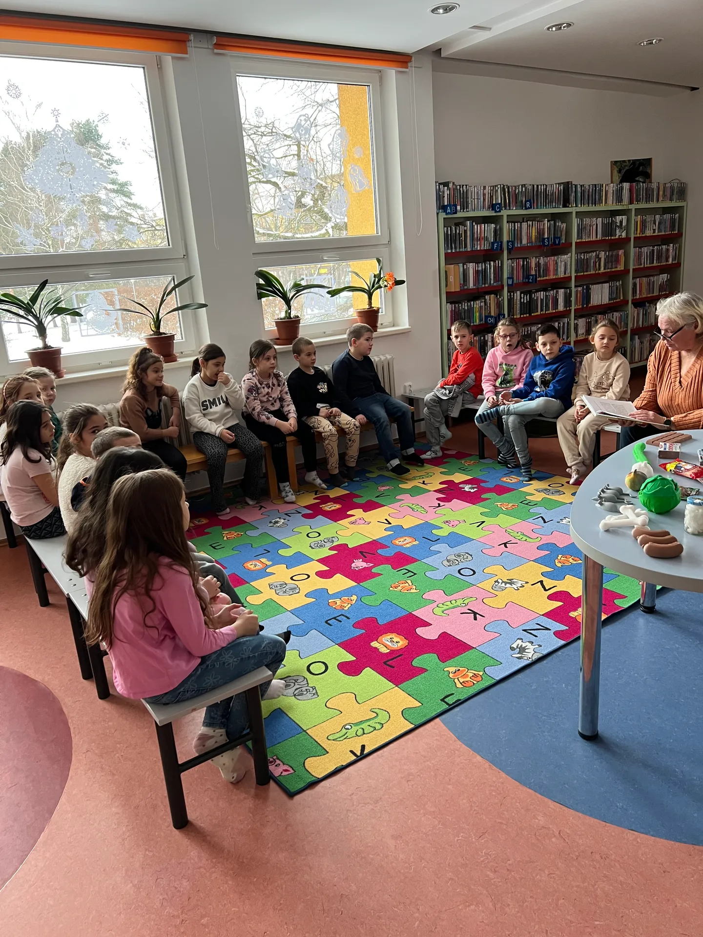 Druháčci navštívili knihovnu, kde pro ně byla připravena beseda o knížce Povídání o pejskovi a kočičce. Poslouchali ukázku z knížky a zjistili, co všechno pejsek a kočička dali do dortu, aby byl nejlepší. Beseda se moc líbila.