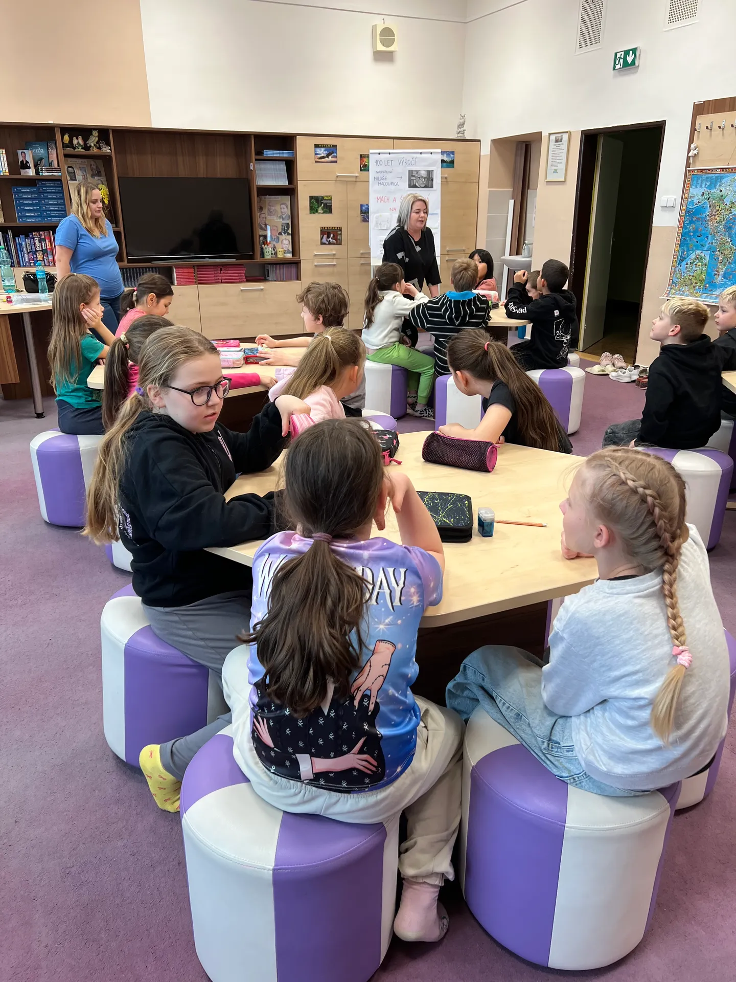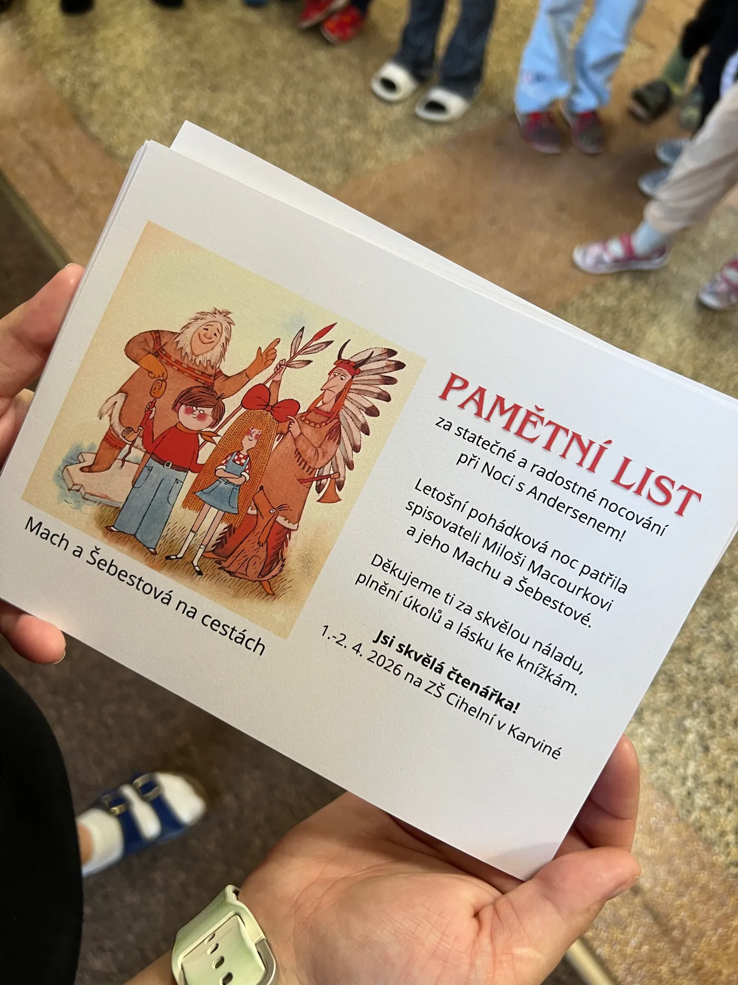 Než začaly velikonoční prázdniny, prožily děti z kroužku Malý čtenář v naší škole Noc s Andersenem. Letošní téma jsme věnovali panu spisovateli Miloši Macourkovi, který by letos slavil 100 let od svého narození. Děti plnily různé aktivity spojené s jeho knížkou Mach a Šebestová na cestách. Při čtení těchto příběhů nebo sledováním Večerníčků jsme se společně vypravili do mnoha koutů světa. Děti stavěly z kostek mrakodrapy, vypravily se za zvířaty Austrálie, řešily telefonní šifry, a také zavítaly do “světové”