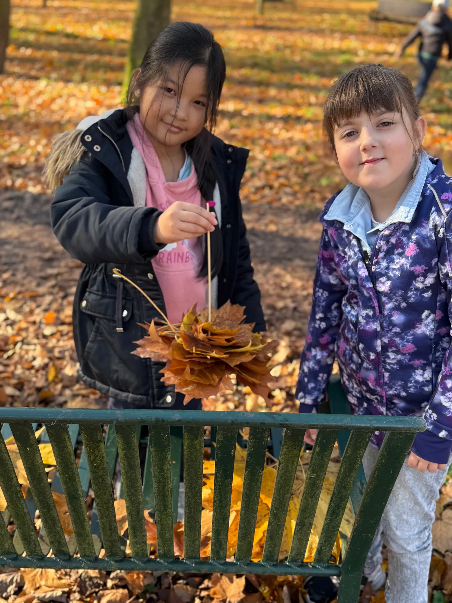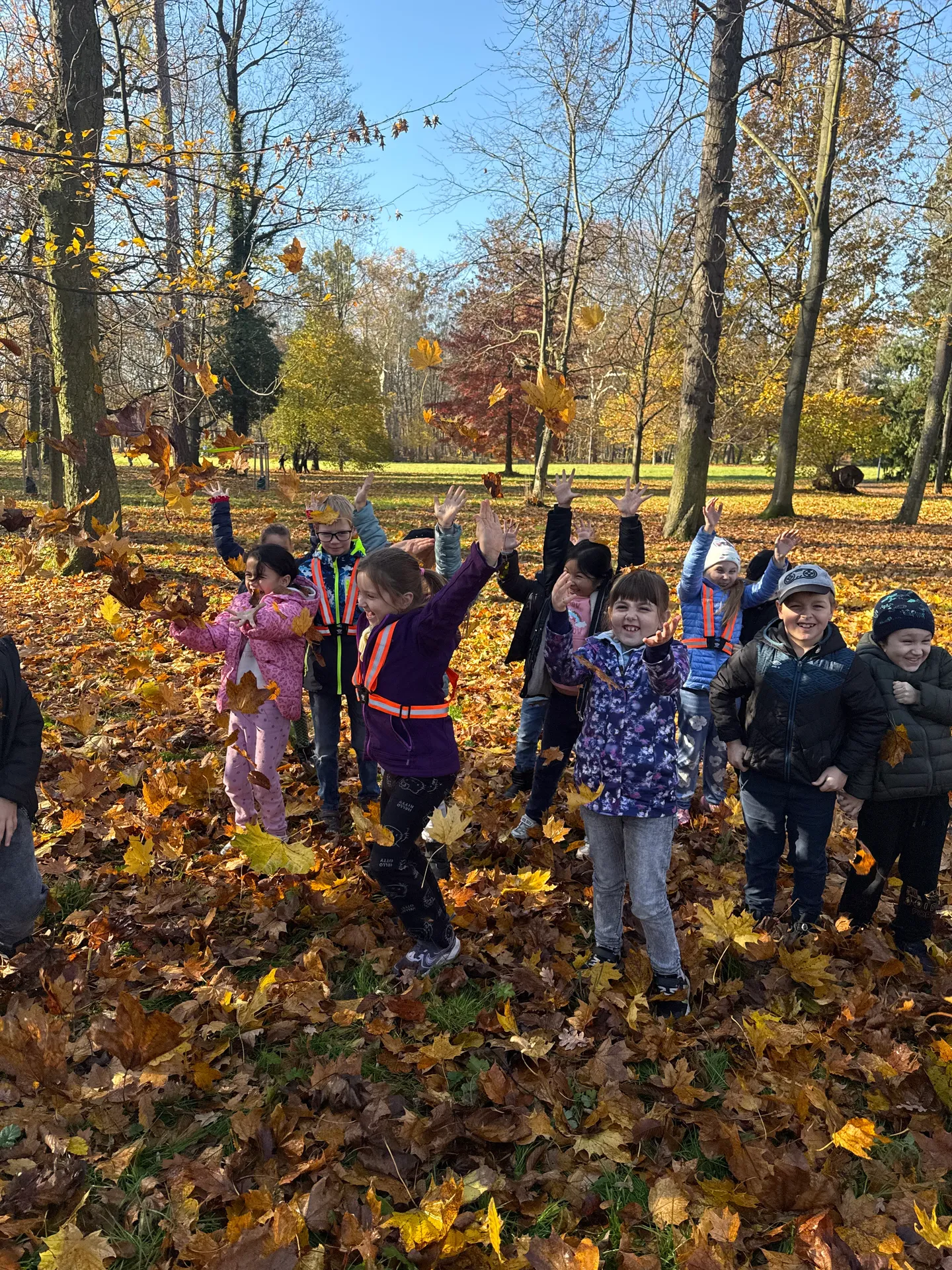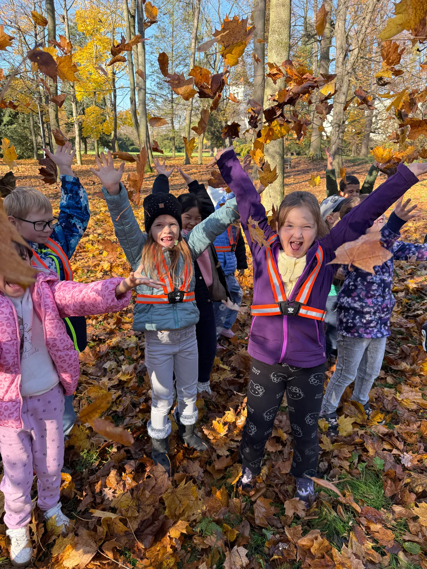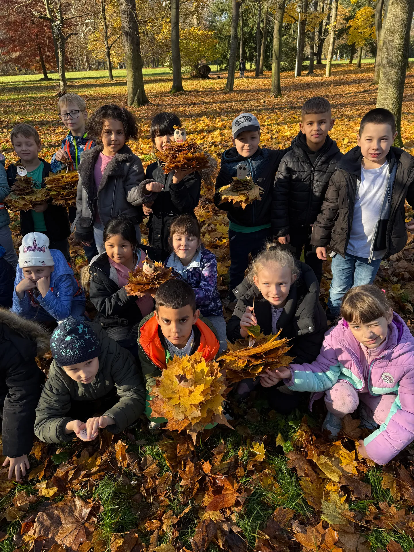 Žáci z 2.B využili podzimní procházku do parku k tvoření lesních skřítků.Děti použily barevné listí, ze kterých poskládaly různé postavičky. Využívaly nejen barev, ale i různých tvarů listů. Skřítkové byli opravdu originální. Odnesly si nejen krásné výrobky, ale i spoustu zážitků z podzimní přírody.