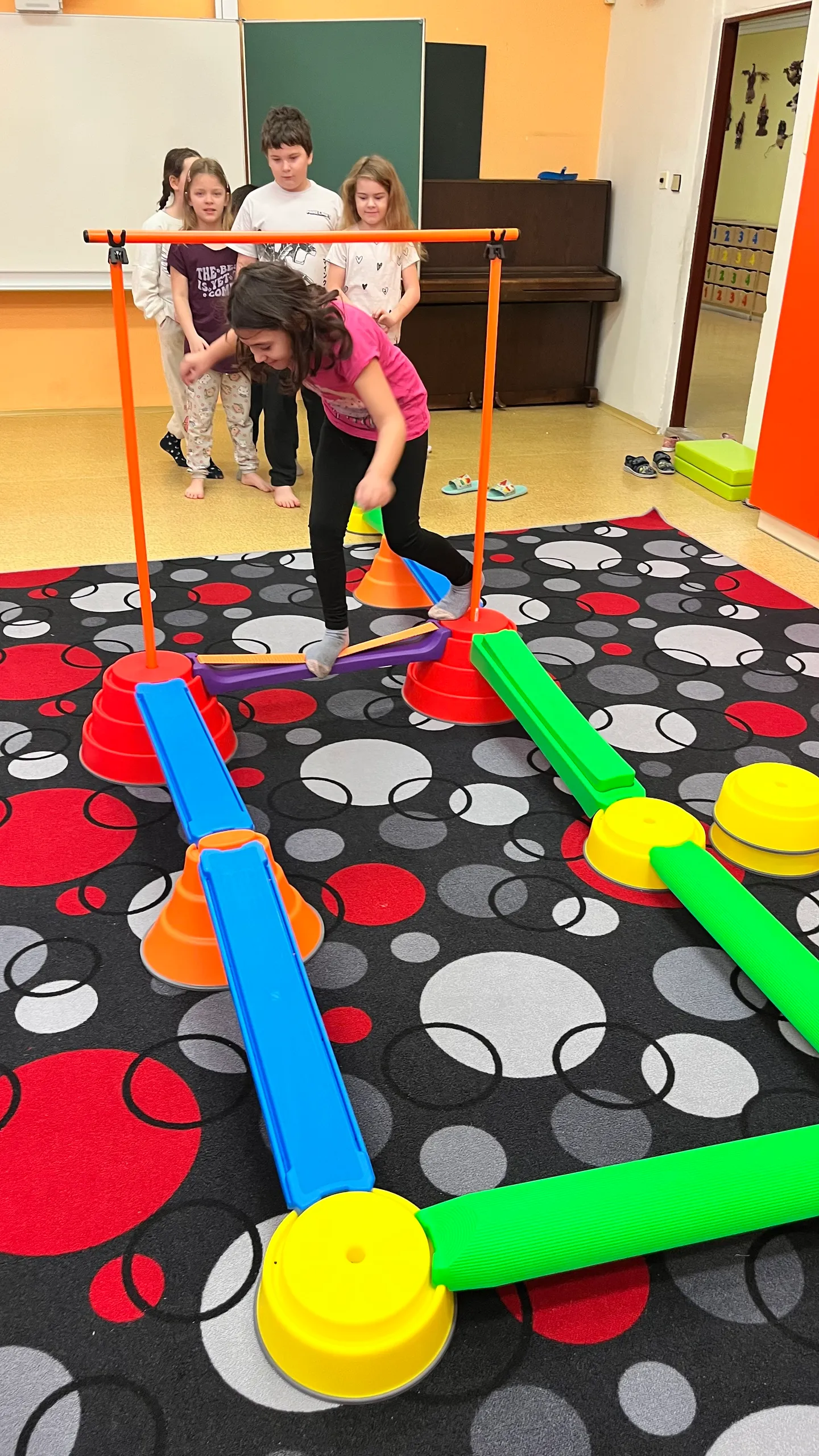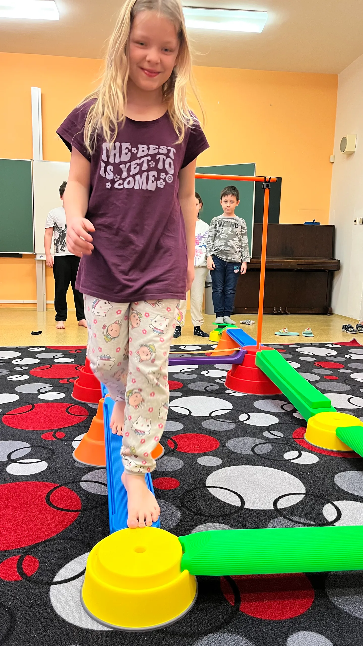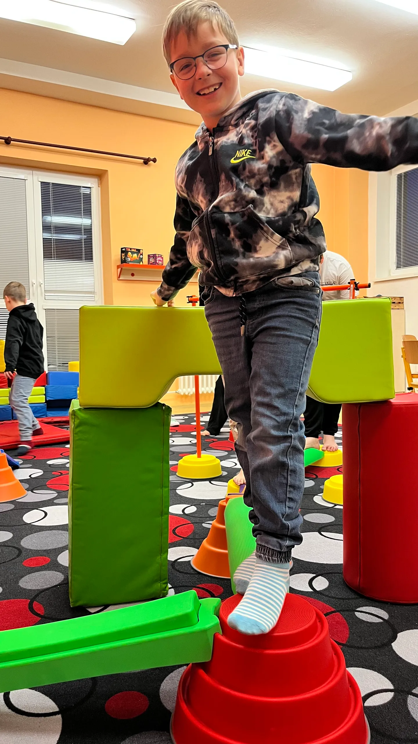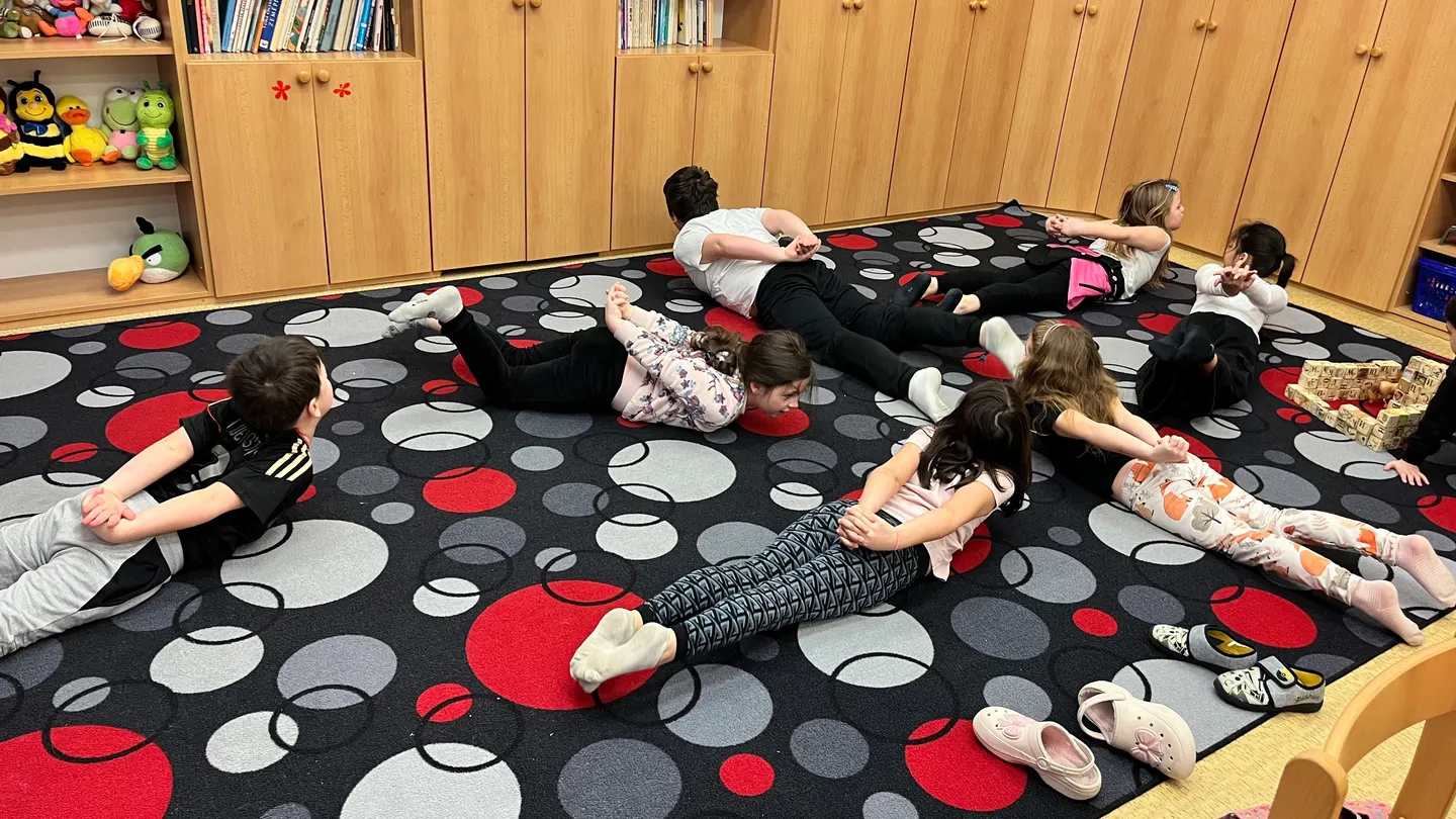 V naší družince ani po ránu neleníme! Každý den začínáme pohybem – protahujeme se při gymnastických cvičeních, zkoušíme jógové pozice, posilujeme celé tělo a trénujeme rovnováhu na balanční dráze. Děti si tak nejen zasportují, ale také se hezky nastartují do nového dne s dobrou náladou.