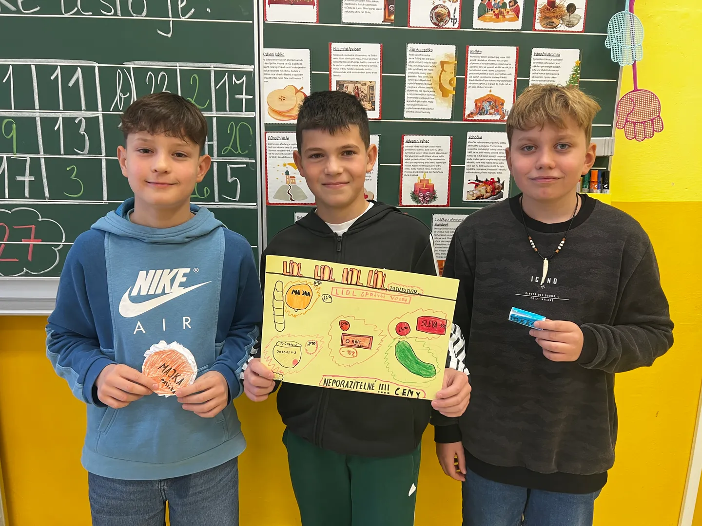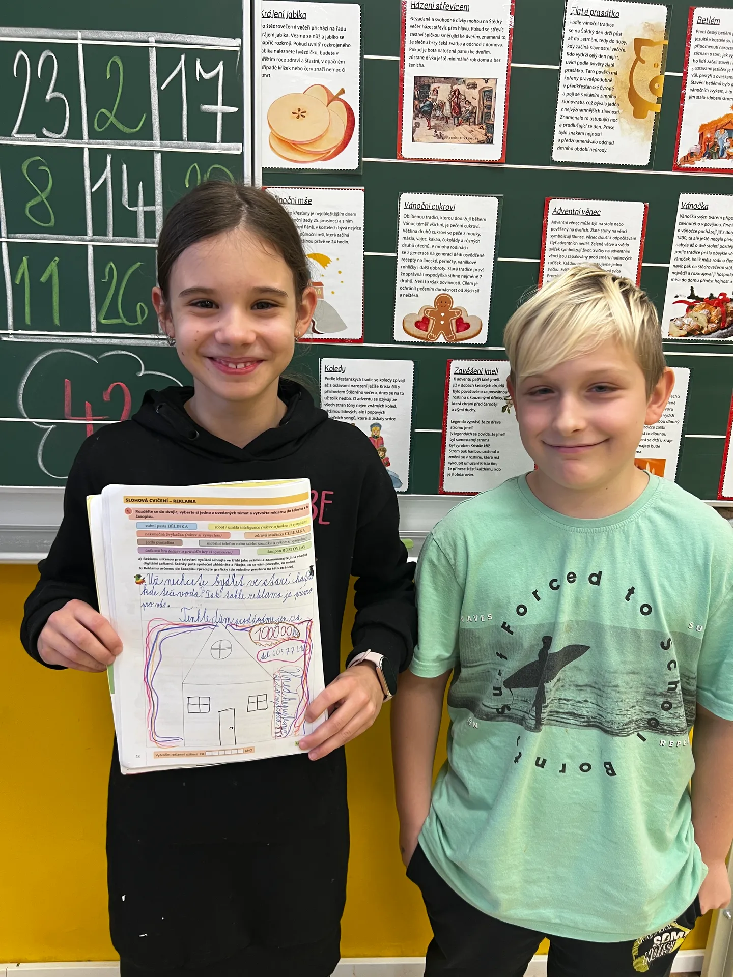 V hodině českého jazyka si žáci 5.A vyzkoušeli tvorbu vlastních reklam. Vymysleli produkty, představili jejich výhody, slevy i akce a snažili se zaujmout spolužáky, aby si výrobek chtěli koupit.
