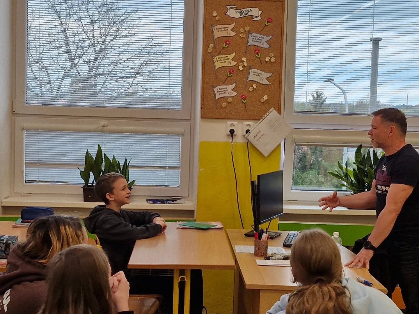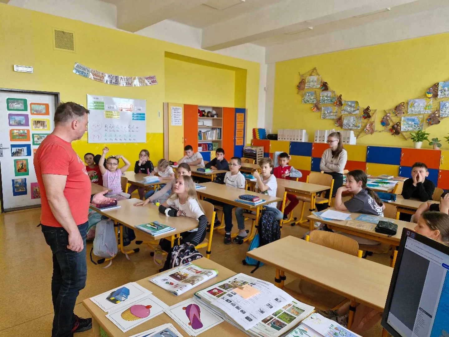Na naší škole jsme opět přivítali rodilého mluvčího anglického jazyka, který k nám zavítal již podruhé. Stejně jako v loňském roce se na jeho návštěvu žáci velmi těšili – a rozhodně se měli na co těšit.