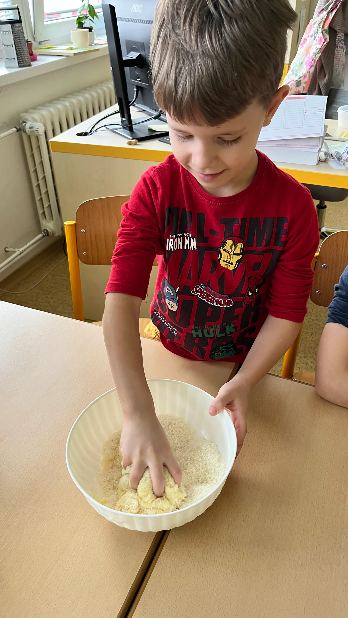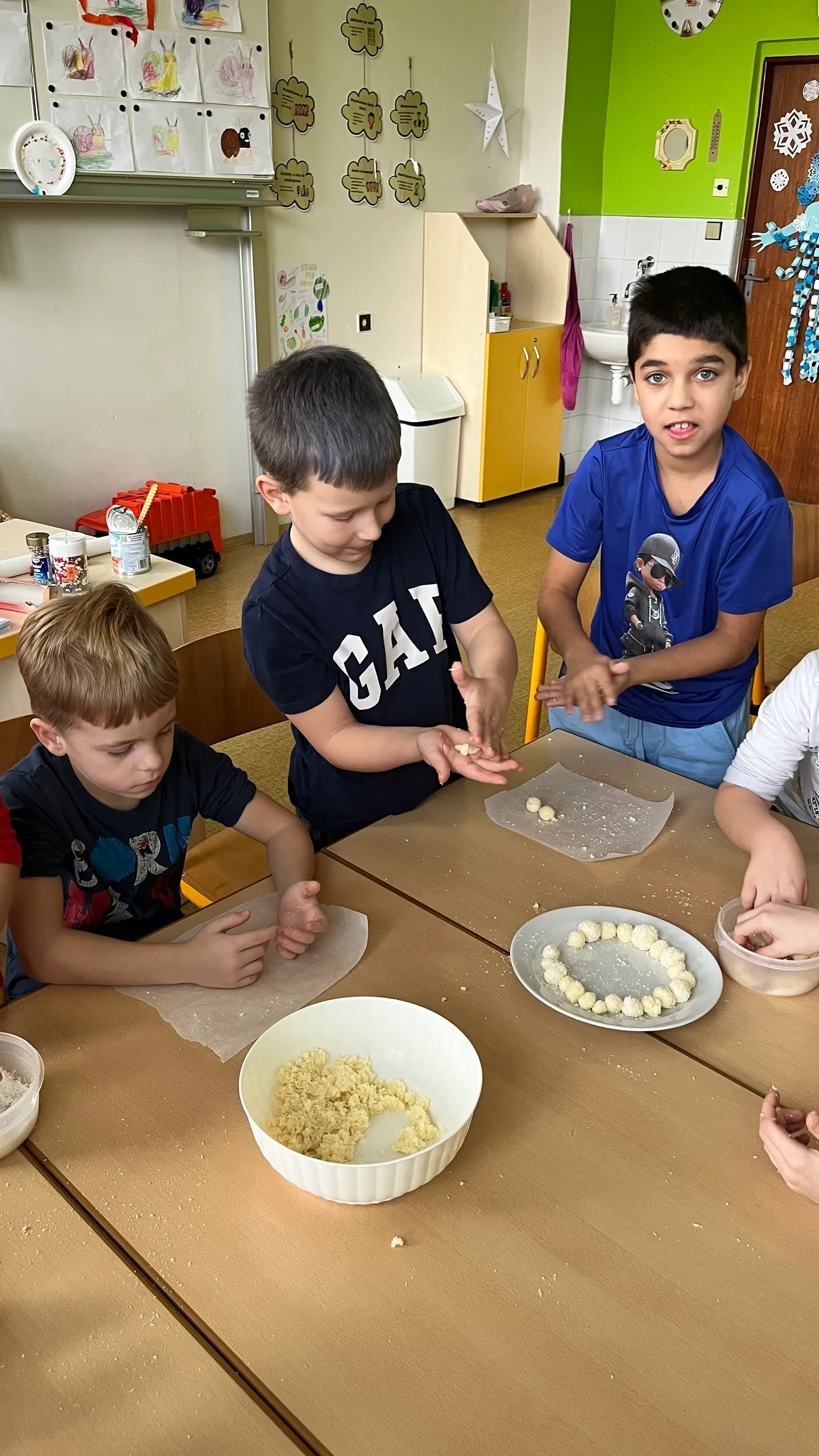 Dnešní odpoledne v družině bylo ve znamení sladké zábavy. Společně jsme připravovali nepečené cukroví – Rafaelo kuličky a sušenkové dobroty. Děti se zapojily do přípravy těsta, tvarovaly kuličky a s radostí je zdobily. Nechyběla dobrá nálada ani chuť do práce .