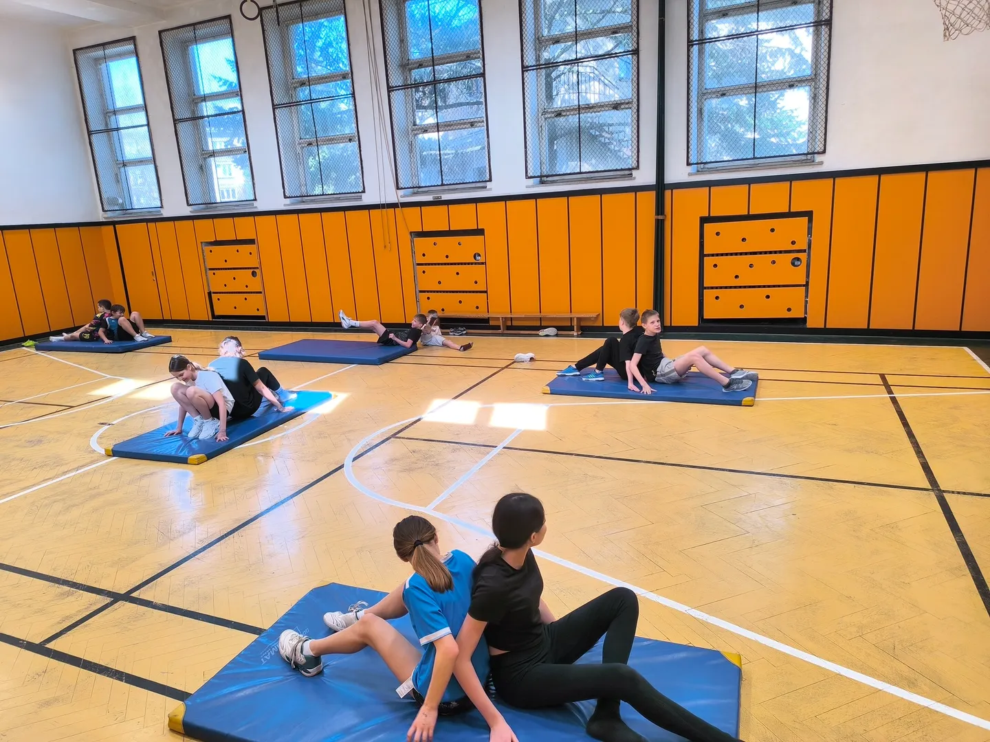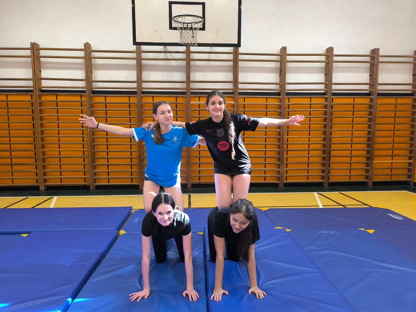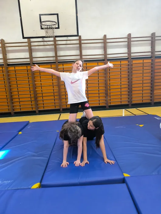 V rámci sportovní třídy se během hodin tělesné výchovy seznamujeme s různými sporty a pohybovými aktivitami. Učíme se nové dovednosti, rozvíjíme pohybové schopnosti a postupně posouváme své vlastní možnosti. Právě cvičení s prvky gymnastiky a akrobacie bylo jednou z dalších výzev, které jsme si společně vyzkoušeli.