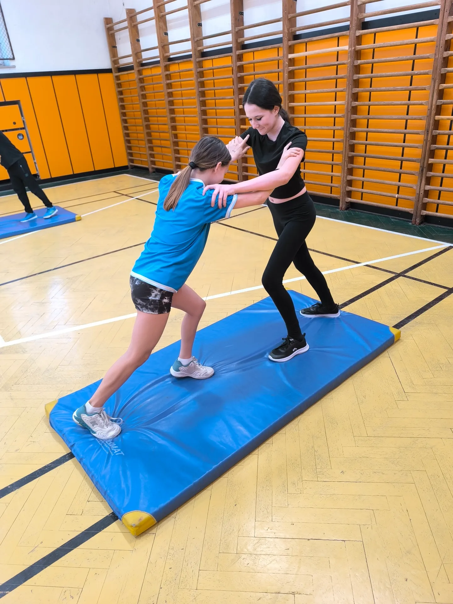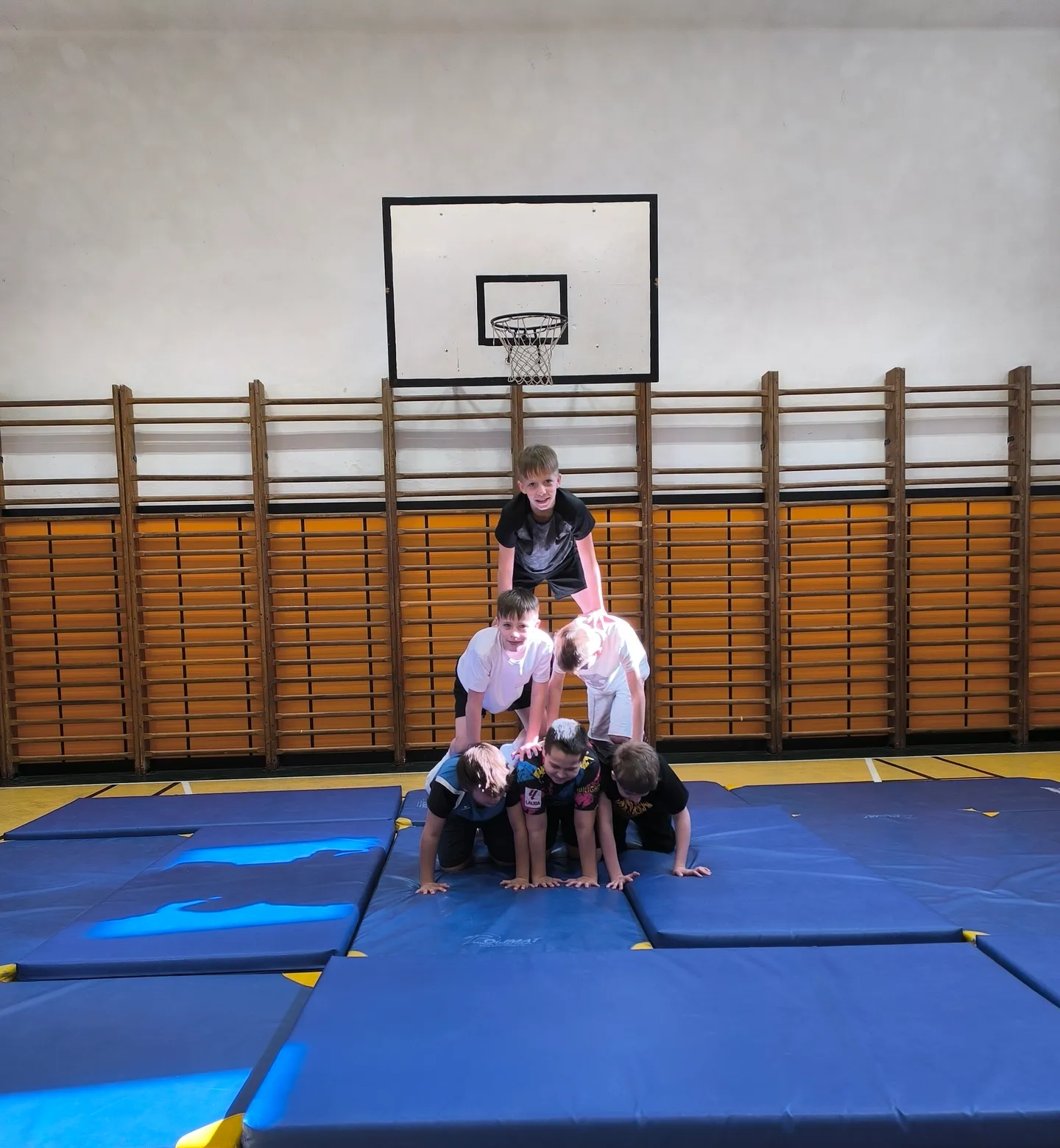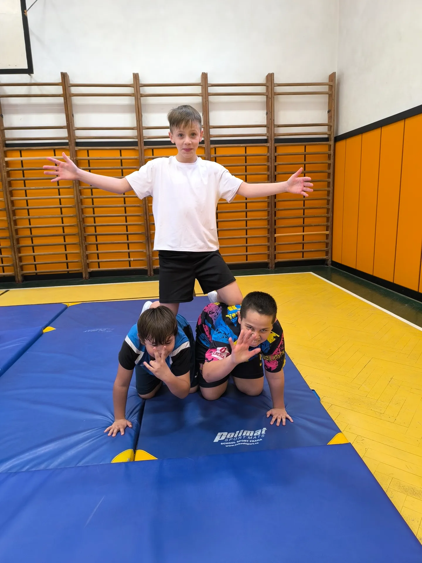 V rámci sportovní třídy se během hodin tělesné výchovy seznamujeme s různými sporty a pohybovými aktivitami. Učíme se nové dovednosti, rozvíjíme pohybové schopnosti a postupně posouváme své vlastní možnosti. Právě cvičení s prvky gymnastiky a akrobacie bylo jednou z dalších výzev, které jsme si společně vyzkoušeli.