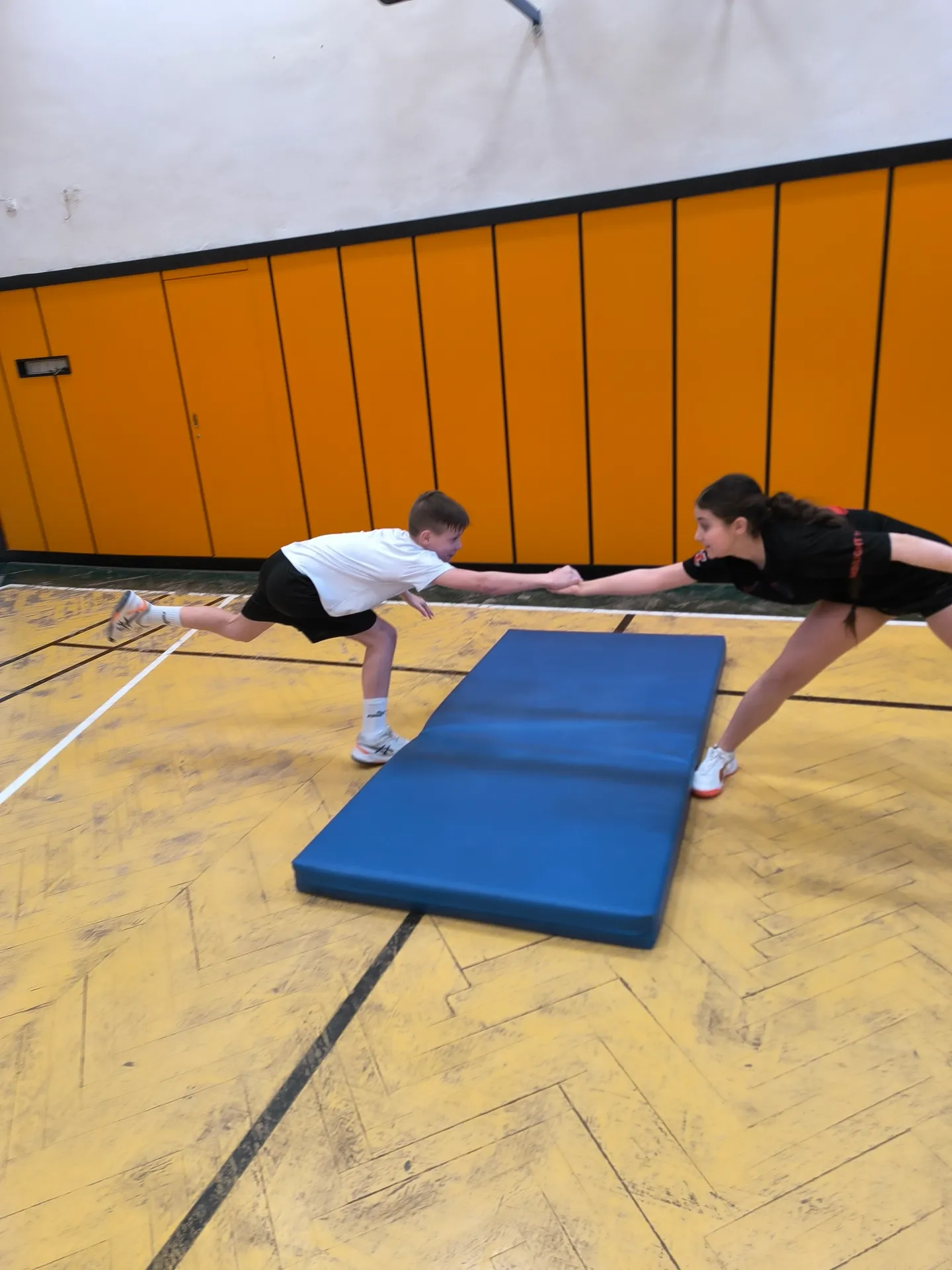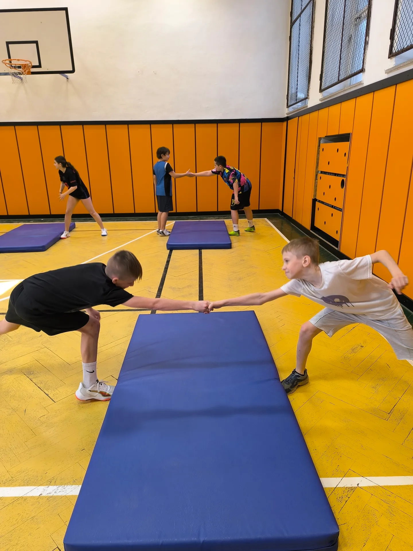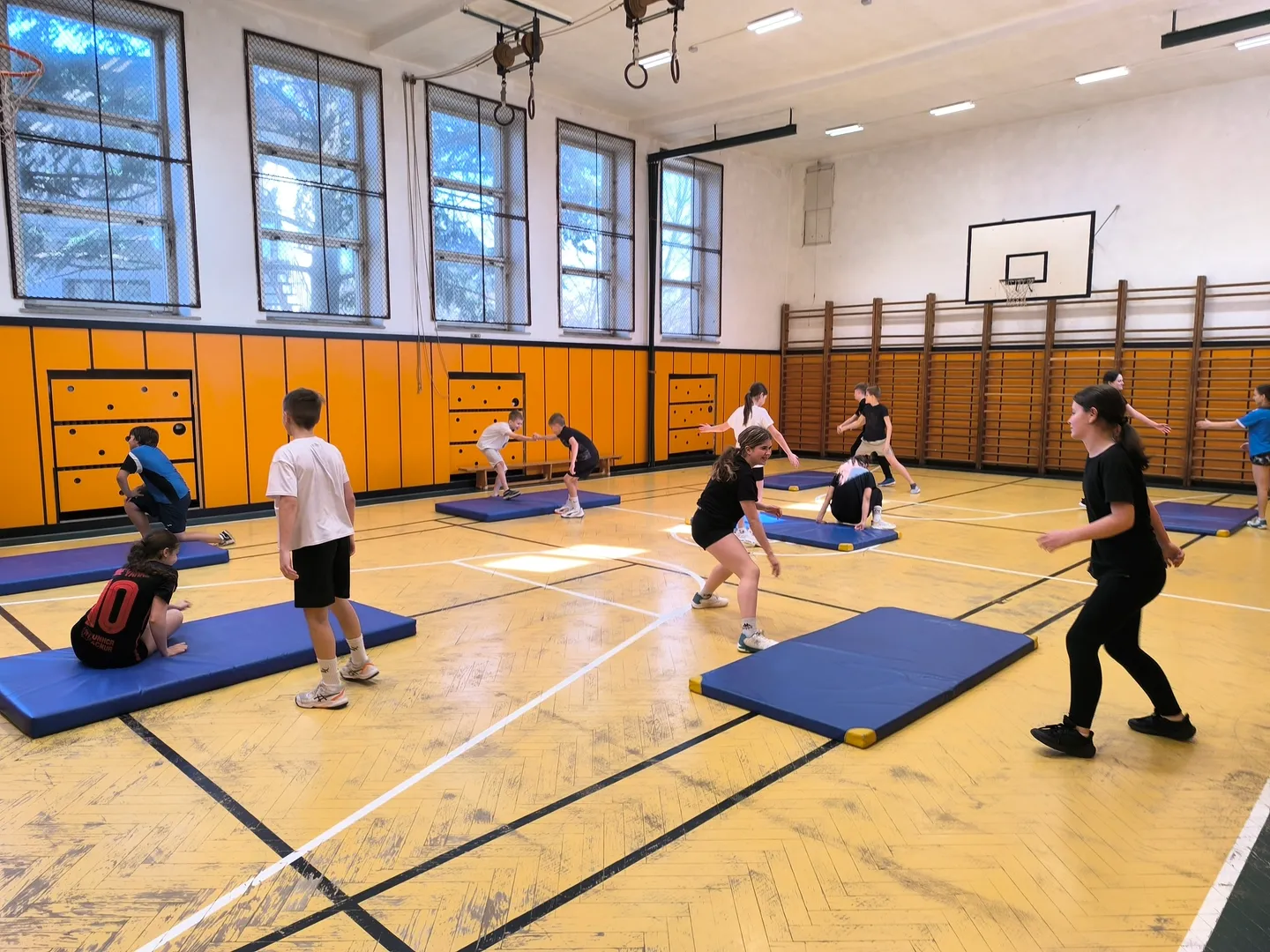 Pro většinu žáků to byla první zkušenost s podobným typem cvičení, takže provedení zatím nebylo vždy úplně dokonalé. O to větší ale bylo nasazení, chuť zkoušet nové věci a posouvat své možnosti. Hodinu jsme si společně užili, nechyběla dobrá nálada, smích ani poctivá dávka pohybu.