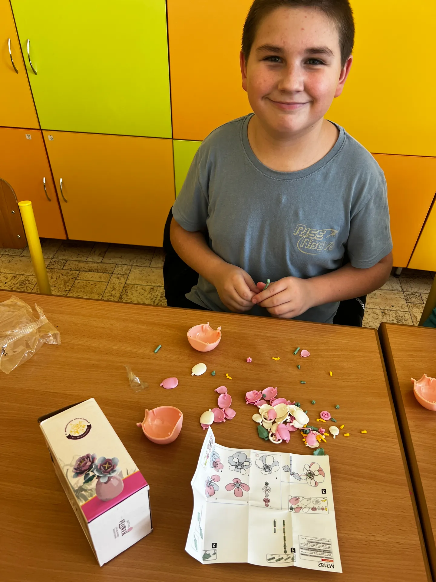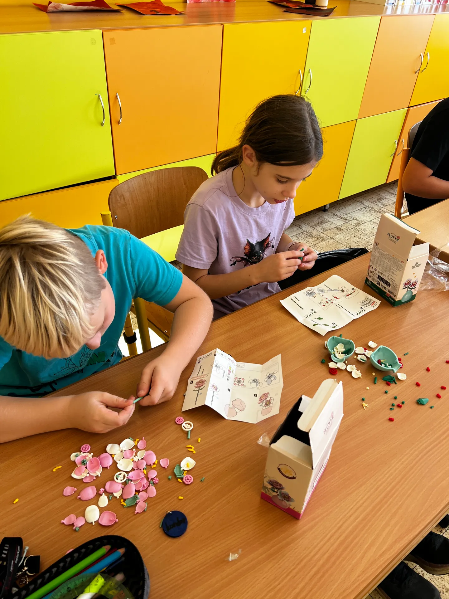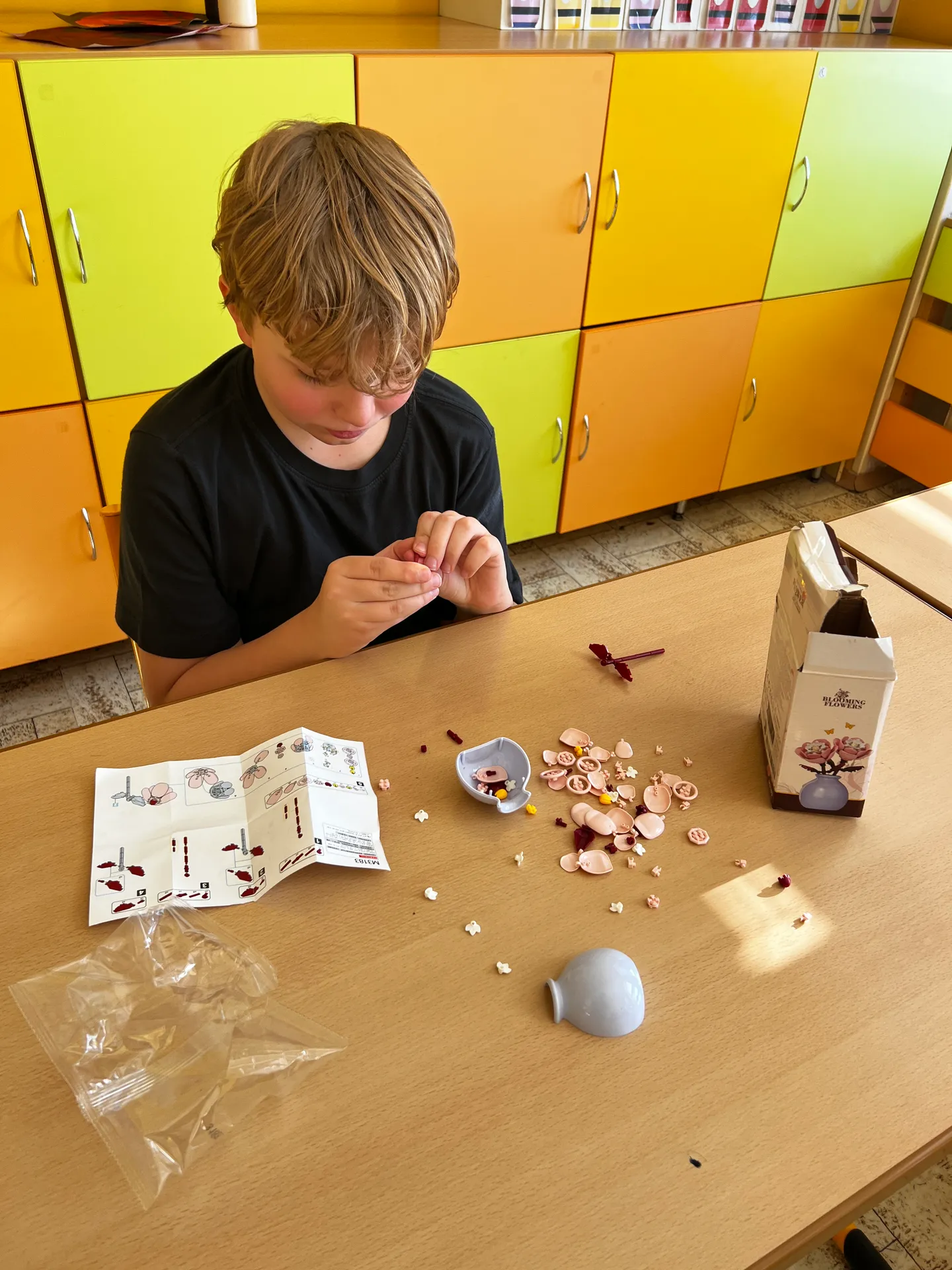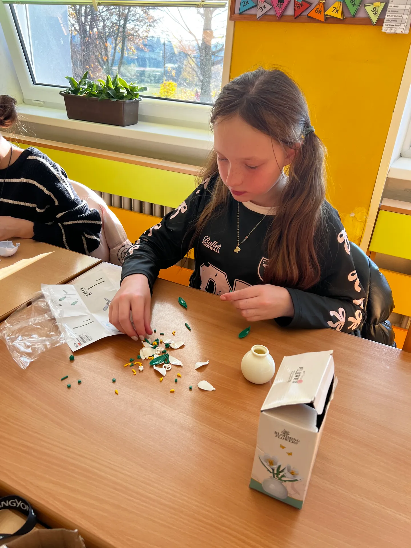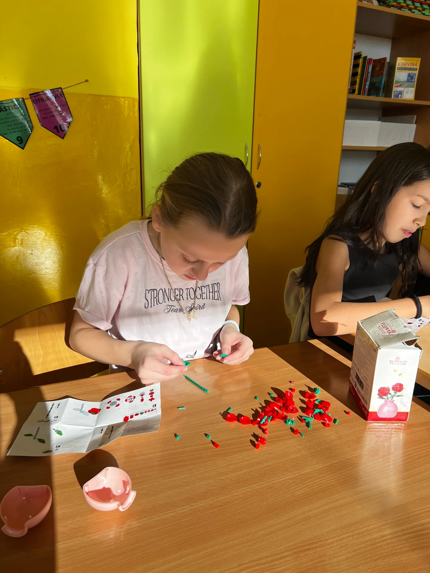 Dnes si děti v kroužku tvořivé dílničky zkoušely stavět kytičku z LEGO stavebnice podle návodu. Práce to byla jemná, plná malých dílků, takže bylo potřeba hodně trpělivosti a soustředění.