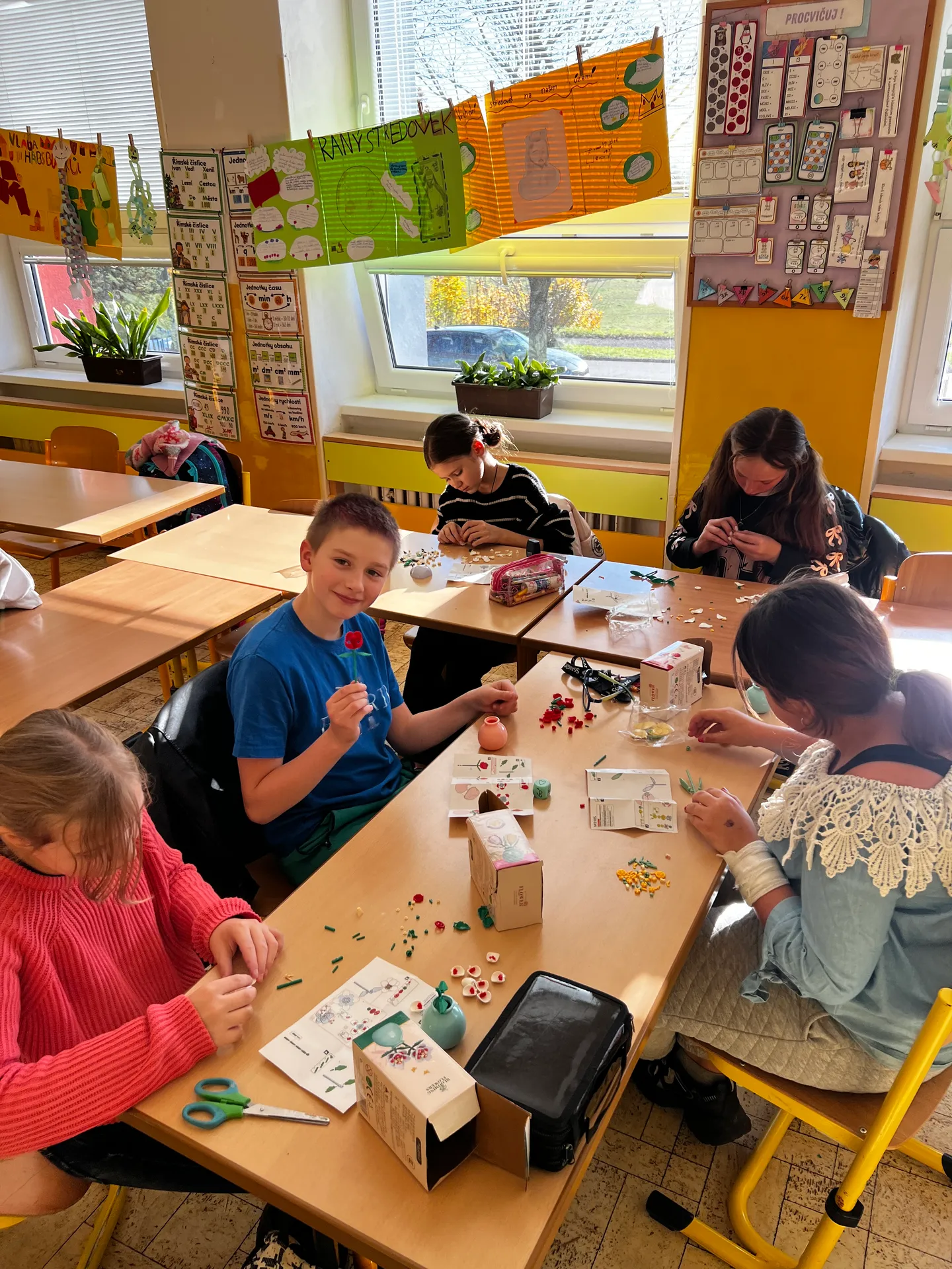 Všichni to ale zvládli skvěle a každý si svoji hotovou kytičku odnesl domů, aby potěšila rodiče nebo ozdobila pokojíček.