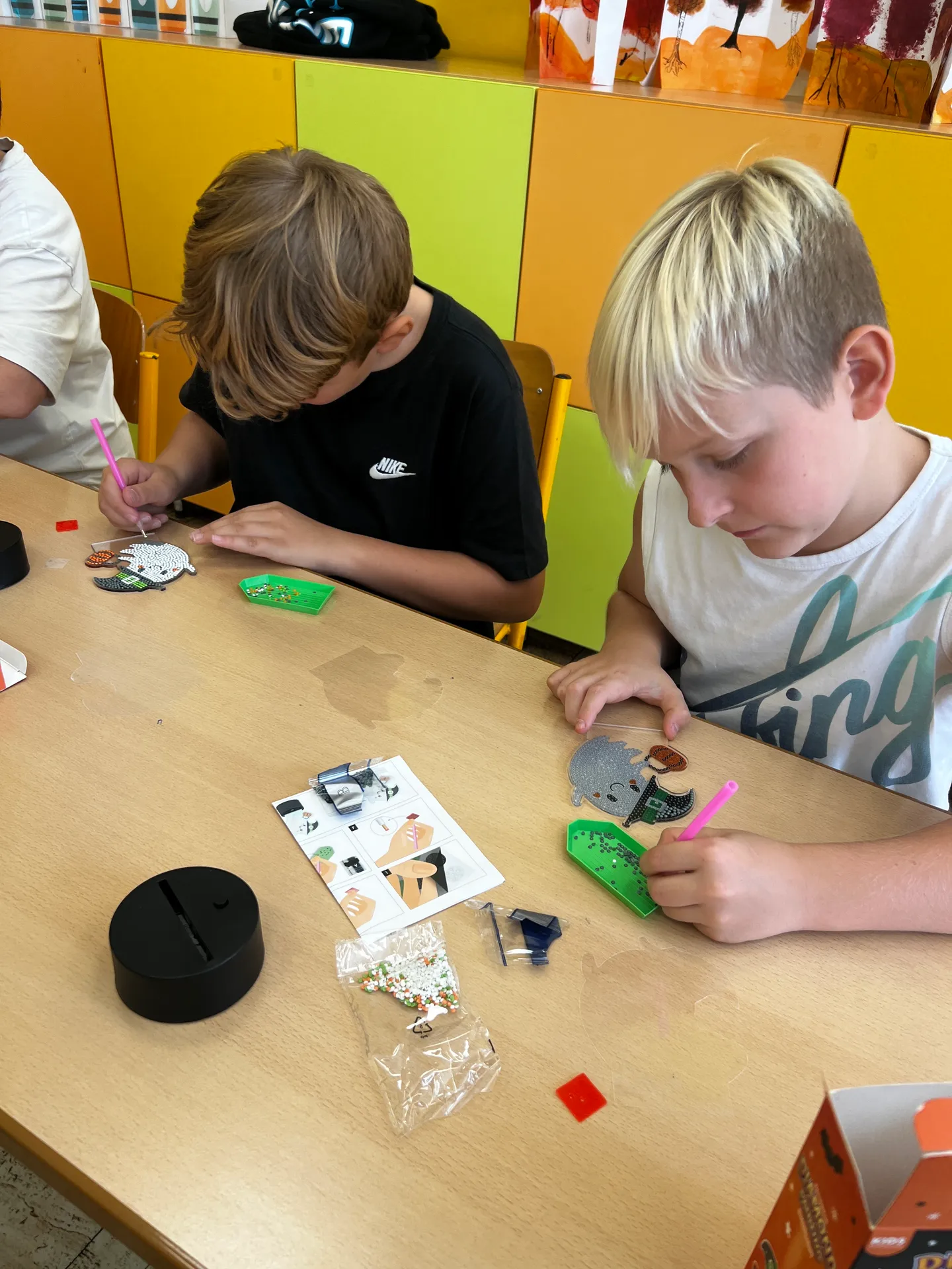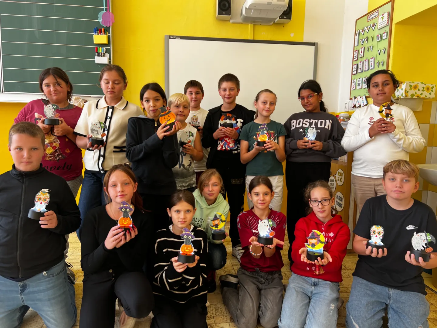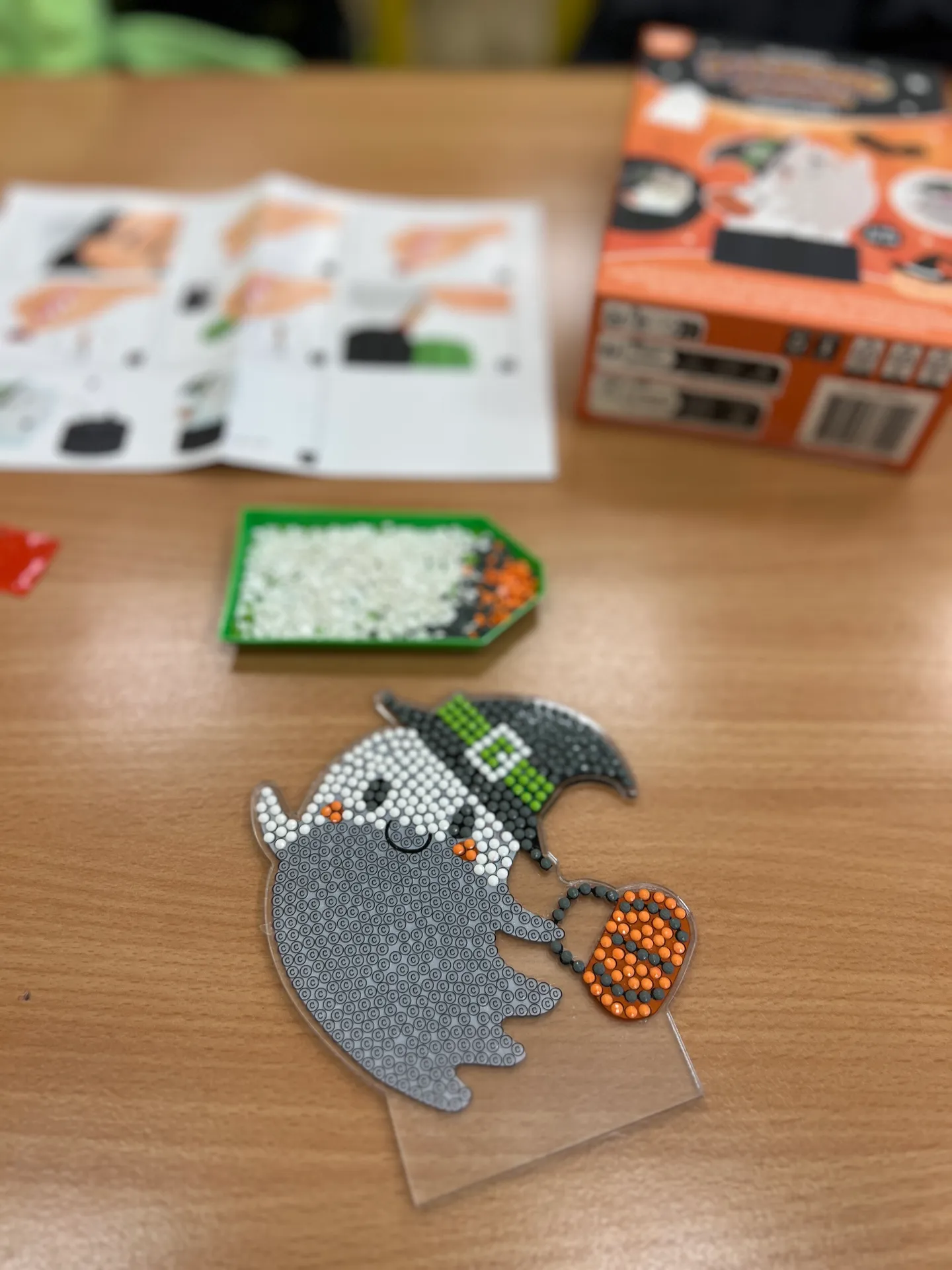 Vyzkoušeli si diamantové malování a touto technikou si ozdobili své halloweenské lampičky, které si hrdě odnesli domů Tak už mají první krásnou dekoraci, která jim rozzáří podzimní večery!