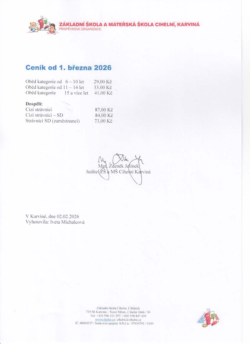 | Ceník obědů od 1.3.2026 | jpg | 6. 2. 2026 | stáhnout |