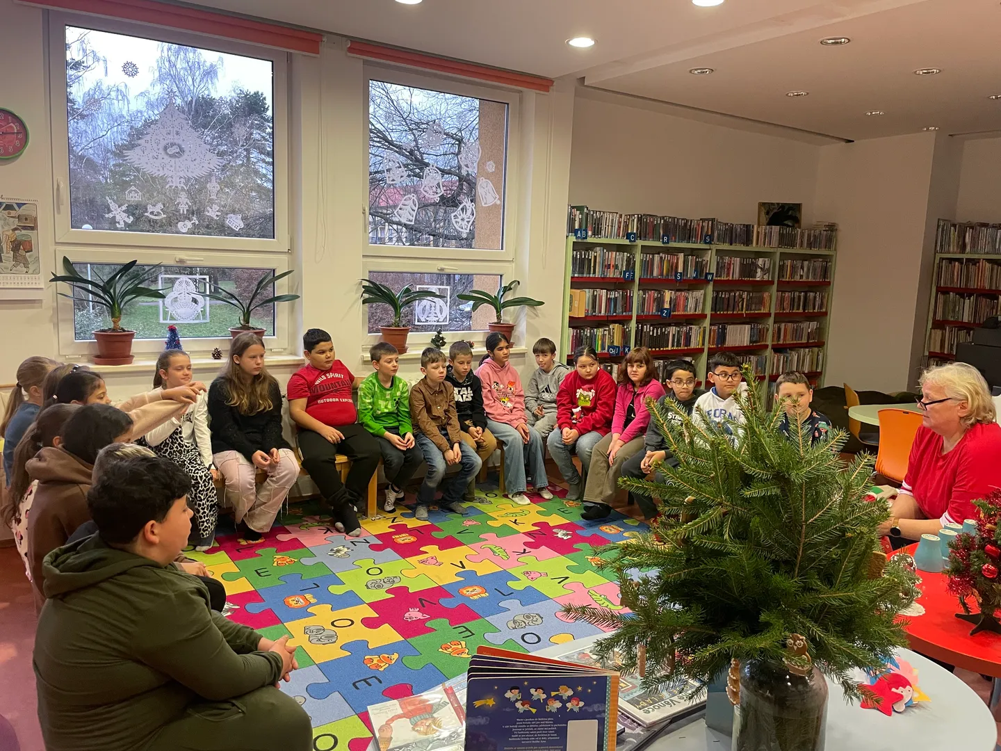 Naši čtvrťáci tento týden navštívili knihovnu. Paní knihovnice si pro nás připravila krásné povídání o Vánocích. Dozvěděli jsme se, jaké vánoční zvyky lidé dodržují, proč si zdobíme stromeček a co všechno patří ke Štědrému večeru. Povídali jsme si také o Ježíškovi a o tom, jak se Vánoce slaví v různých zemích.